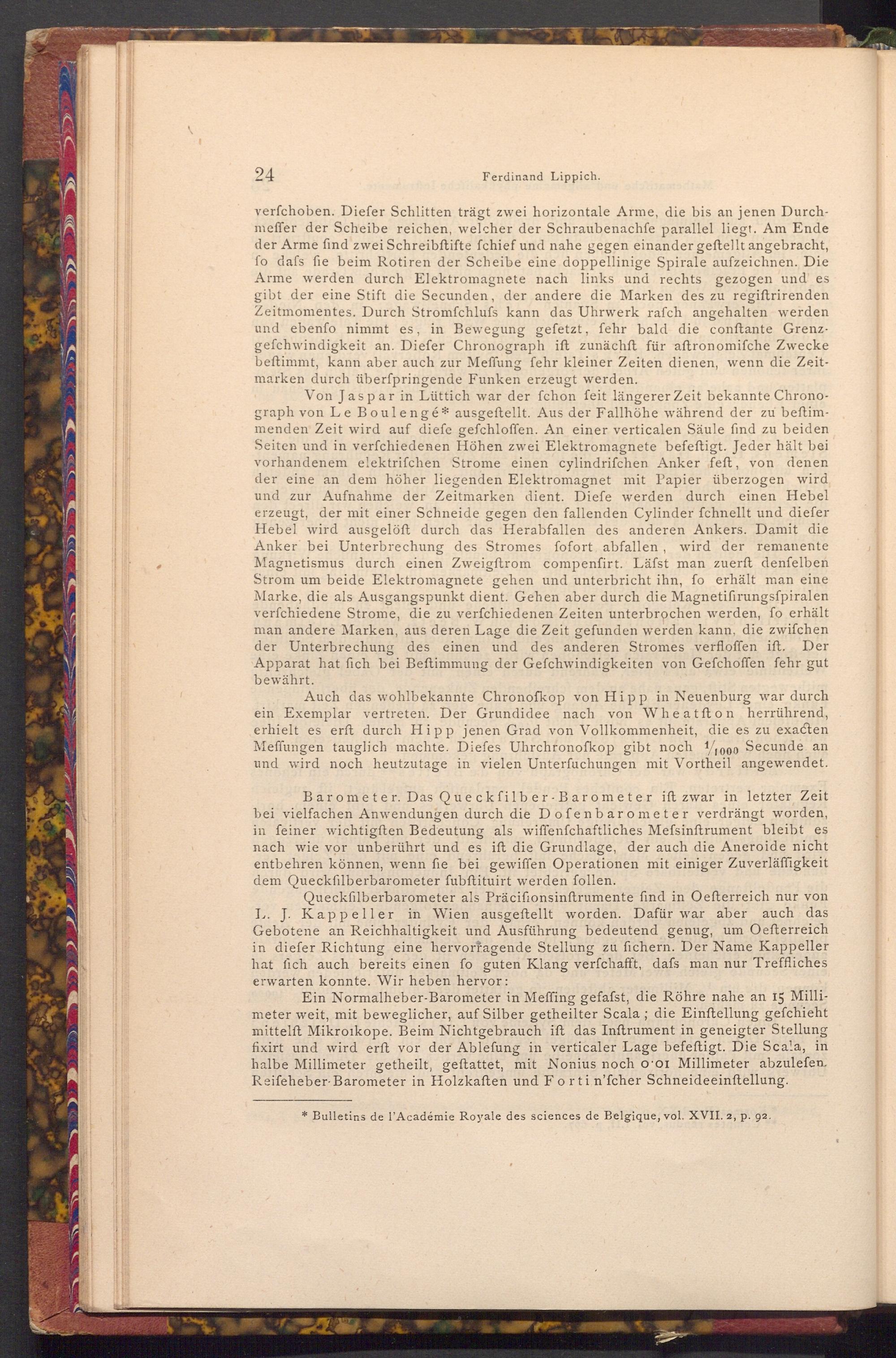 Queckfilberbarometer als Präcifionsinftrumente find in Oefterreich nur von L. J. Kappeller in Wien ausgeftellt worden. Dafür war aber auch das Gebotene an Reichhaltigkeit und Ausführung bedeutend genug, um Oefterreich in diefer Richtung eine hervorragende Stellung zu fichern. Der Name Kappeller hat fich auch bereits einen fo guten Klang verfchafft, dafs man nur Treffliches erwarten konnte. Wir heben hervor: