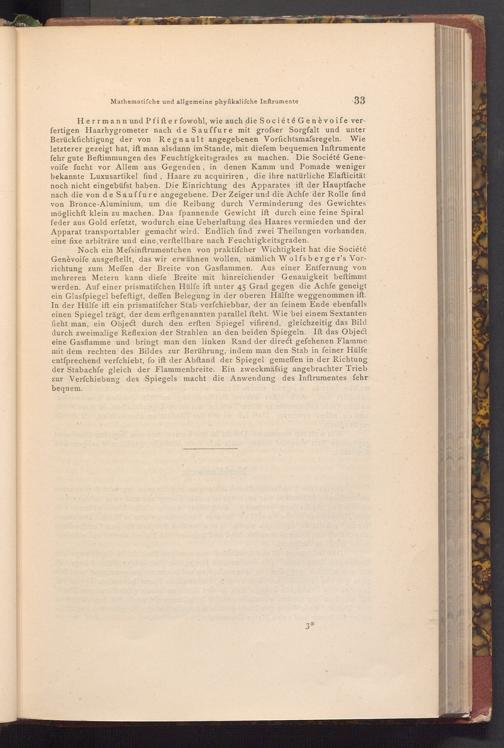 Herrmann und Pfifter fowohl, wie auch die Société Genèvoife verfertigen Haarhygrometer nach de Sauffure mit grofser Sorgfalt und unter Berücksichtigung der von Regnault angegebenen Vorfichtsmafsregeln. Wie letzterer gezeigt hat, ift man alsdann im Stande, mit diefem bequemen Inftrumente fehr gute Beftimmungen des Feuchtigkeitsgrades zu machen. Die Société Genevoife fucht vor Allem aus Gegenden, in denen Kamm und Pomade weniger bekannte Luxusartikel find, Haare zu acquiriren, die ihre natürliche Elafticität noch nicht eingebüfst haben. Die Einrichtung des Apparates ift der Hauptfache nach die von de Sauffure angegebene. Der Zeiger und die Achfe der Rolle find von Bronce- Aluminium, um die Reibung durch Verminderung des Gewichtes möglichft klein zu machen. Das fpannende Gewicht ift durch eine feine Spiralfeder aus Gold erfetzt, wodurch eine Ueberlaftung des Haares vermieden und der des H Apparat transportabler gemacht wird. Endlich find zwei Theilungen vorhanden, eine fixe arbiträre und eine verftellbare nach Feuchtigkeitsgraden.