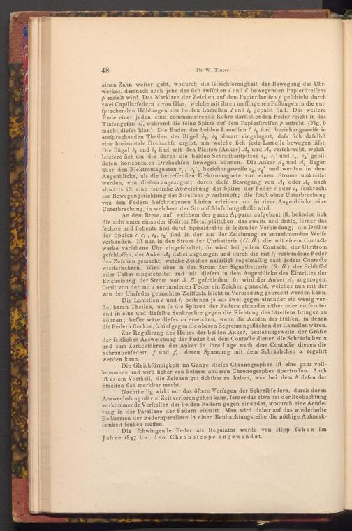 Die fchwingende Feder als Regulator wurde von Hipp fchon im Jahre 1847 bei dem Chronofcope angewendet.