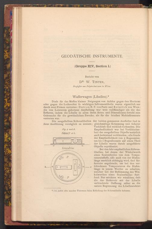 Diefe für das Meffen kleiner Neigungen von Achfen gegen den Horizont oder gegen die Lothrechte fo wichtigen Inftrumenttheile waren eigentlich nur durch zwei Firmen vertreten: Dutrou E. P. von Paris und Reinifch von Wien; die von Letzterem gebotene Ausftellung war weit vollſtändiger als die des Erfteren, indem die Libelle in allen ihren Arten und Dimenfionen fowohl zum Gebrauche für die gewöhnlichen Zwecke, als für die feinften Mefsinftrumente