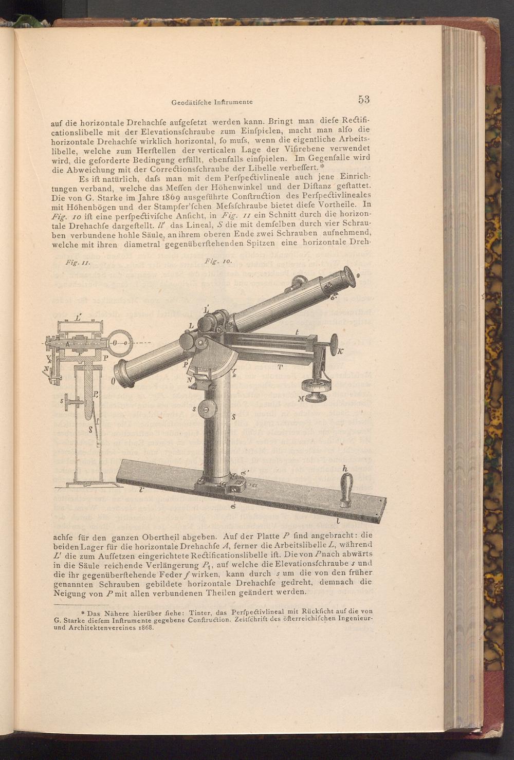 * Das Nähere hierüber fiehe: Tinter, das Perfpectivlineal mit Rückficht auf die von G. Starke diefem Inftrumente gegebene Conftruction. Zeitfchrift des öfterreichifchen Ingenieurund Architektenvereines 1868.