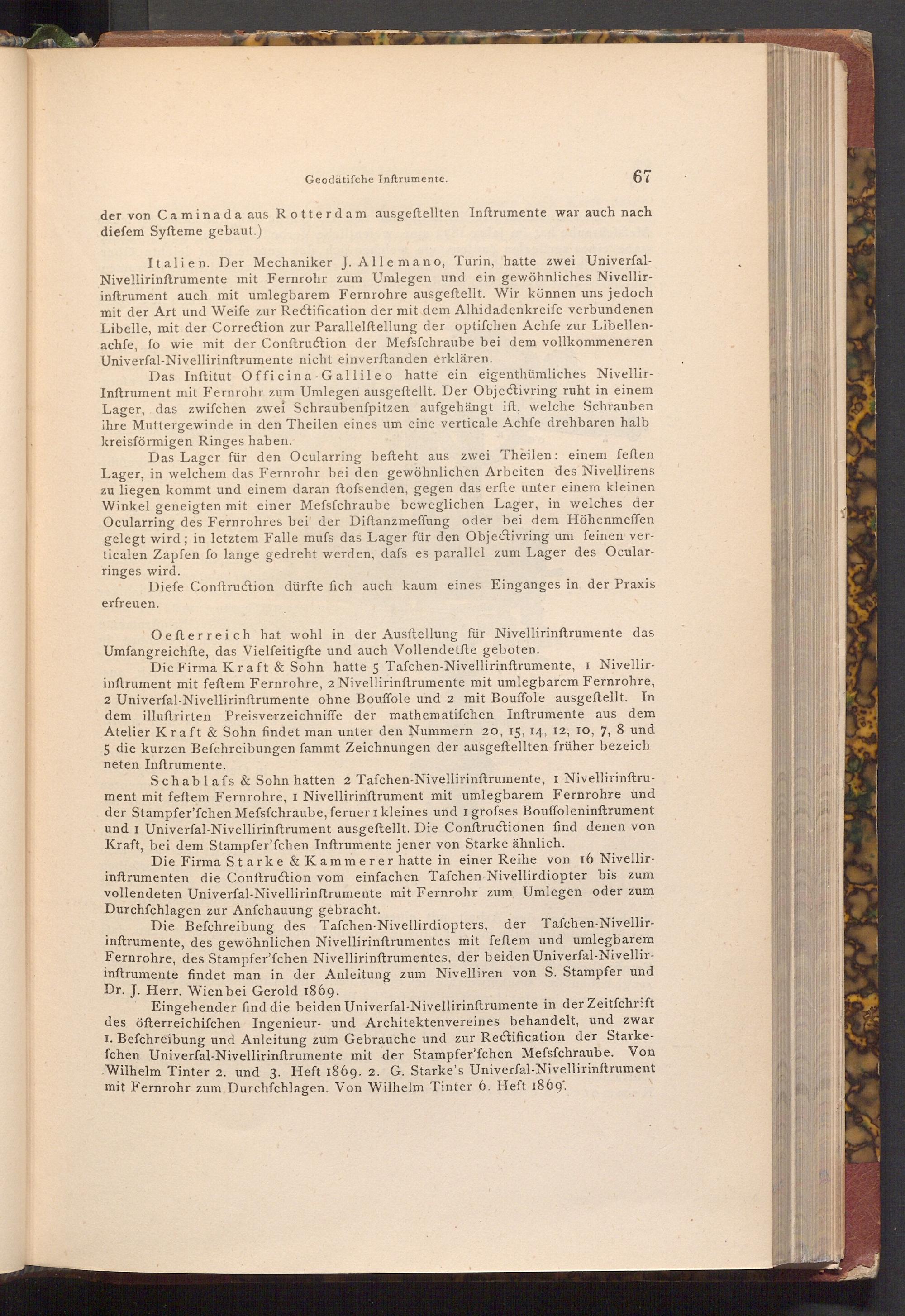 Eingehender find die beiden Univerfal- Nivellirinftrumente in der Zeitfchrift des öfterreichifchen Ingenieur- und Architektenvereines behandelt, und zwar 1. Befchreibung und Anleitung zum Gebrauche und zur Rectification der Starkefchen Univerfal- Nivellirinftrumente mit der Stampfer'fchen Mefsfchraube. Von Wilhelm Tinter 2. und 3. Heft 1869. 2. G. Starke's Univerfal- Nivellirinftrument mit Fernrohr zum Durchfchlagen. Von Wilhelm Tinter 6. Heft 1869.