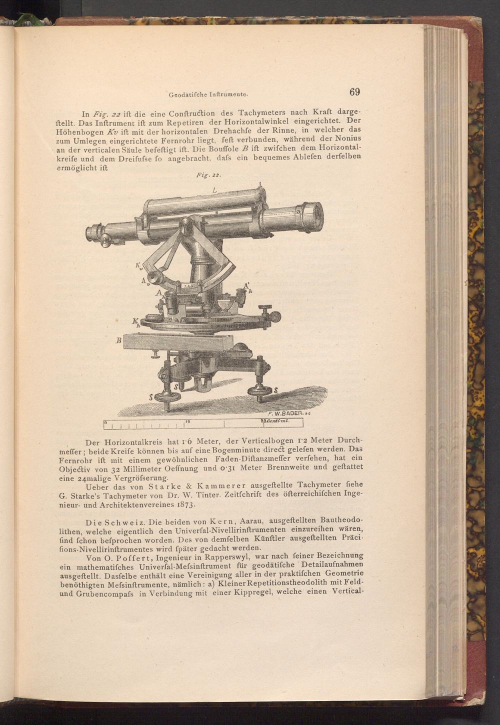 Ueber das von Starke& Kammerer ausgeftellte Tachymeter fiehe G. Starke's Tachymeter von Dr. W. Tinter. Zeitfchrift des öfterreichifchen Ingenieur- und Architektenvereines 1873.