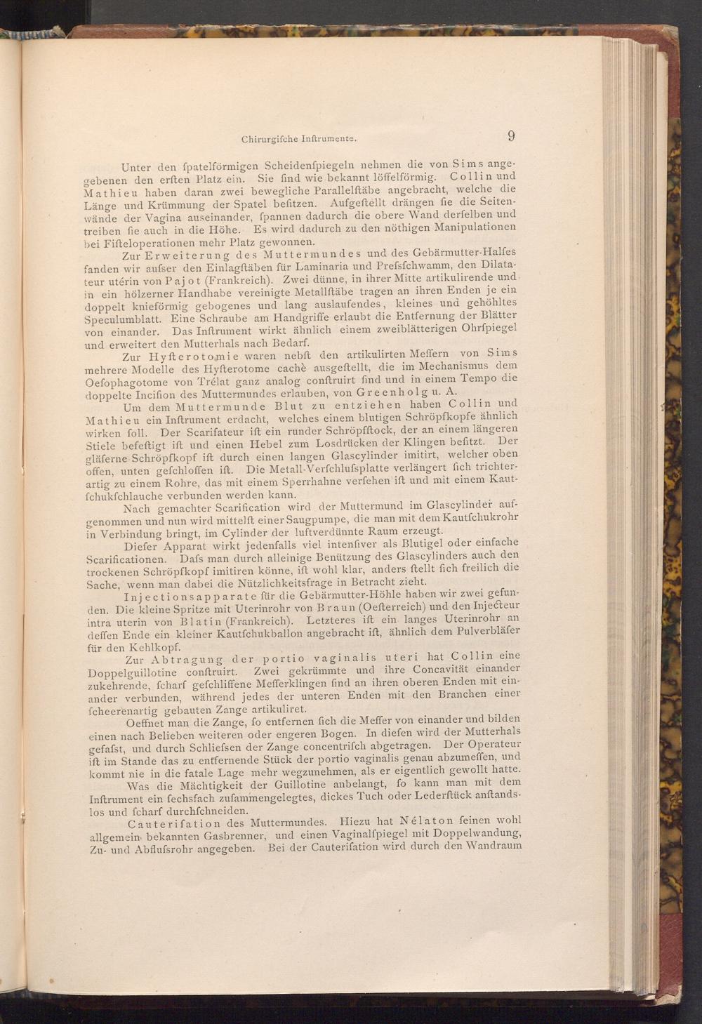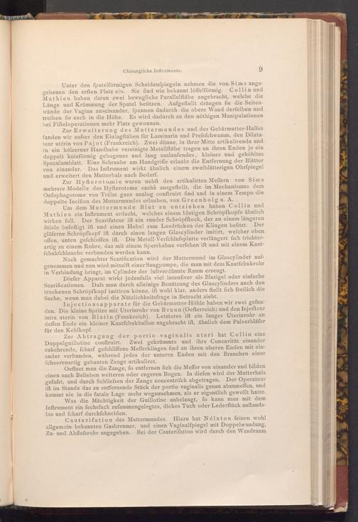 Zur Hyfterotomie waren nebft den artikulirten Meffern von Sims mehrere Modelle des Hyfterotome cachè ausgeftellt, die im Mechanismus dem Oefophagotome von Trélat ganz analog conftruirt find und in einem Tempo die doppelte Incifion des Muttermundes erlauben, von Greenholg u. A.