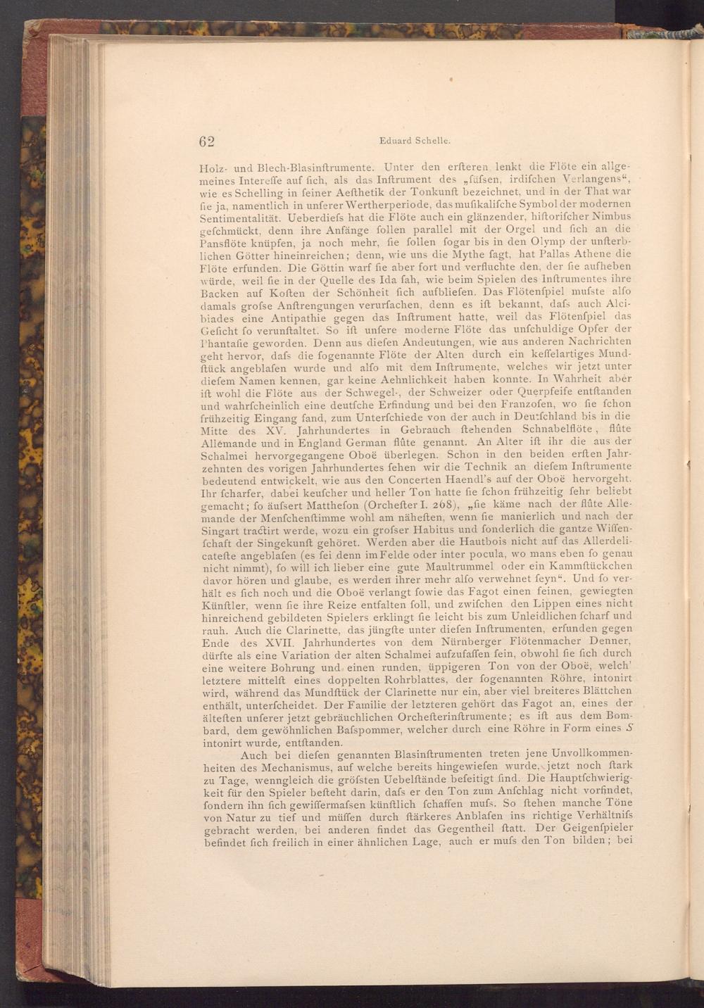 Auch bei diefen genannten Blasinftrumenten treten jene Unvollkommenheiten des Mechanismus, auf welche bereits hingewiefen wurde, jetzt noch ftark zu Tage, wenngleich die gröfsten Uebelftände befeitigt find. Die Hauptfchwierigkeit für den Spieler befteht darin, dafs er den Ton zum Anfchlag nicht vorfindet, fondern ihn fich gewiffermafsen künftlich fchaffen mufs. So ftehen manche Töne von Natur zu tief und müffen durch ftärkeres Anblafen ins richtige Verhältnifs gebracht werden, bei anderen findet das Gegentheil ftatt. Der Geigenfpieler befindet fich freilich in einer ähnlichen Lage, auch er mufs den Ton bilden; bei