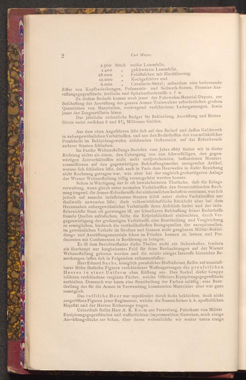 Im Parifer Weltausftellungs- Berichte vom Jahre 1867 finden wir in diefer Richtung nichts als einen, den Uebergang von den fchwerfälligen, den gegenwärtigen Zeitverhältniffen nicht mehr entſprechenden, beftandenen Monturs commiffionen auf den gegenwärtigen Befchaffungsmodus anregenden Artikel, woraus fich fchliefsen läfst, dafs auch in Paris dem Heerwefen in diefer Beziehung nicht Rechnung getragen war, was aber bei der ungleich grofsartigeren Anlage der Wiener Weltausftellung billig vorausgefetzt werden konnte.