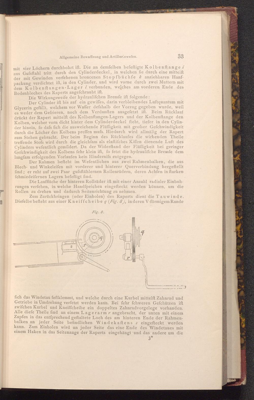 Zum Zurückbringen( oder Einholen) des Raperts dient die Tauwinde. Diefelbe befteht aus einer Kneiffcheibe q( Fig. 8), in deren V- förmigem Rande