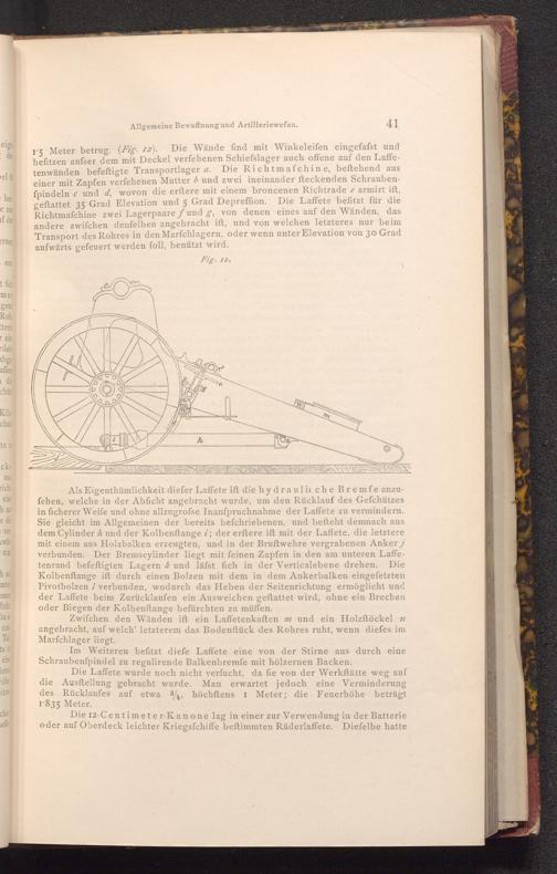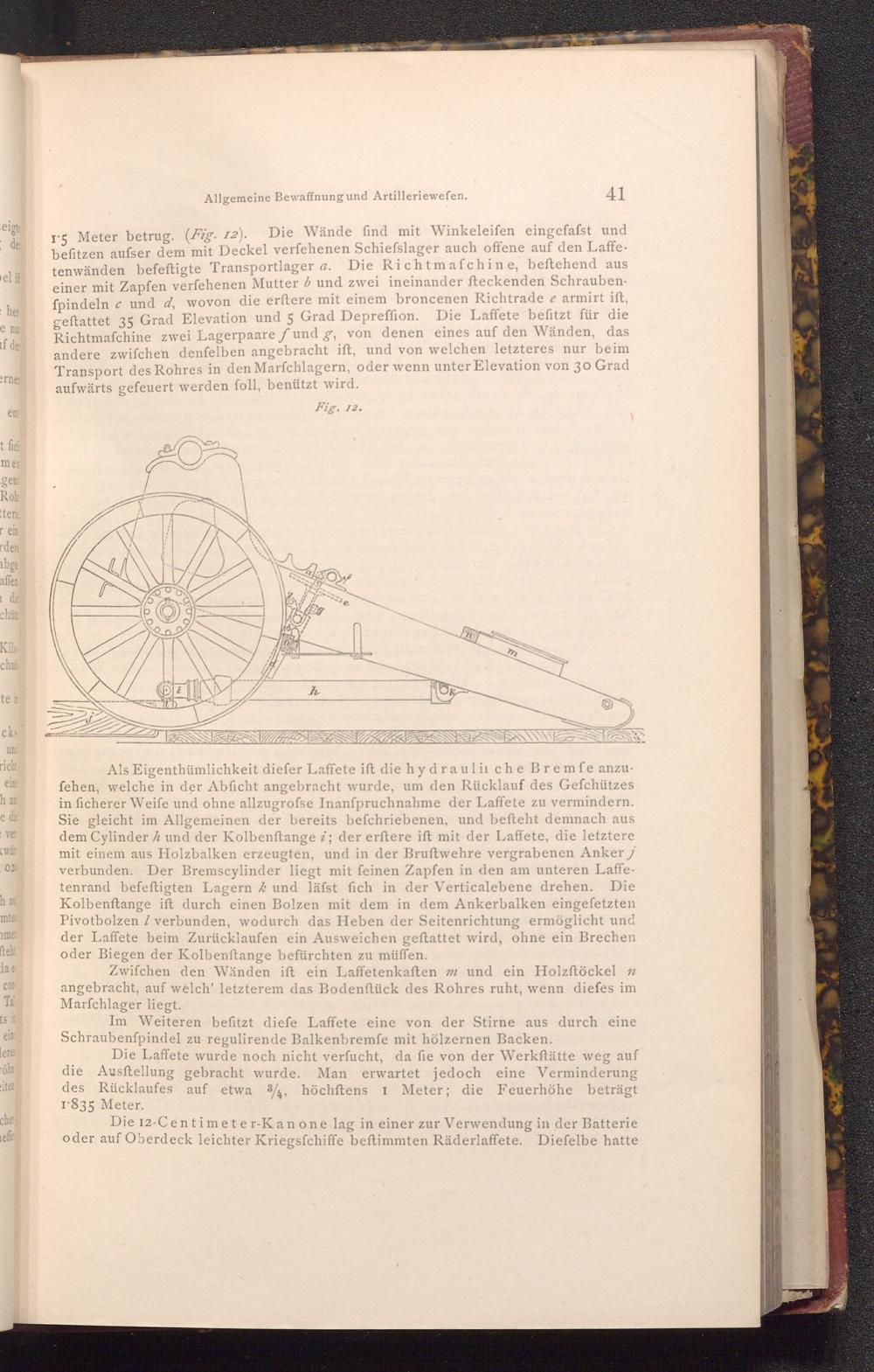 Die 12- Centimeter- Kanone lag in einer zur Verwendung in der Batterie oder auf Oberdeck leichter Kriegsfchiffe beftimmten Räderlaffete. Diefelbe hatte