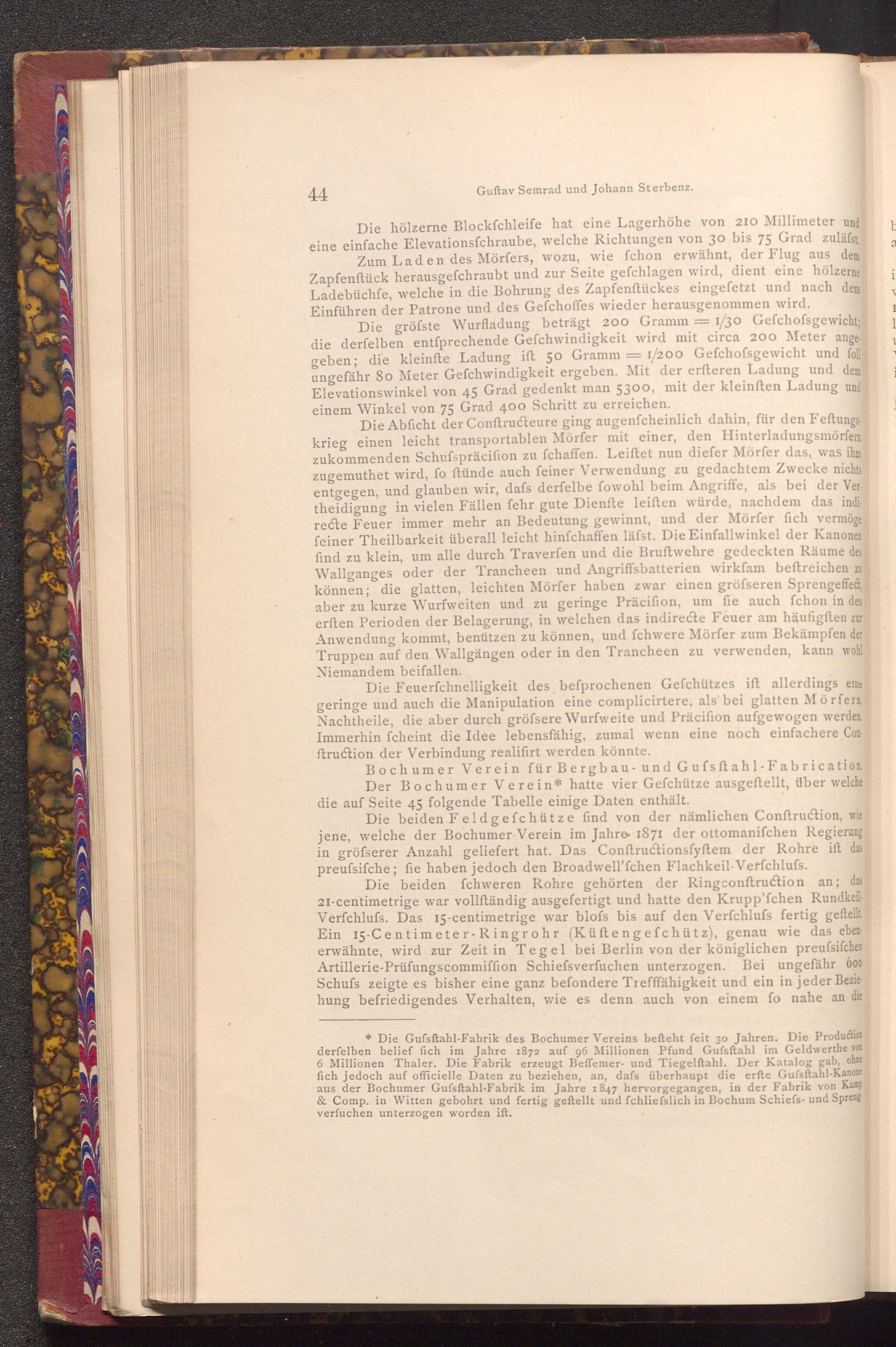 Bochumer Verein für Bergbau- und Gufsftahl- Fabrication. Der Bochumer Verein* hatte vier Gefchütze ausgeftellt, über welche die auf Seite 45 folgende Tabelle einige Daten enthält.