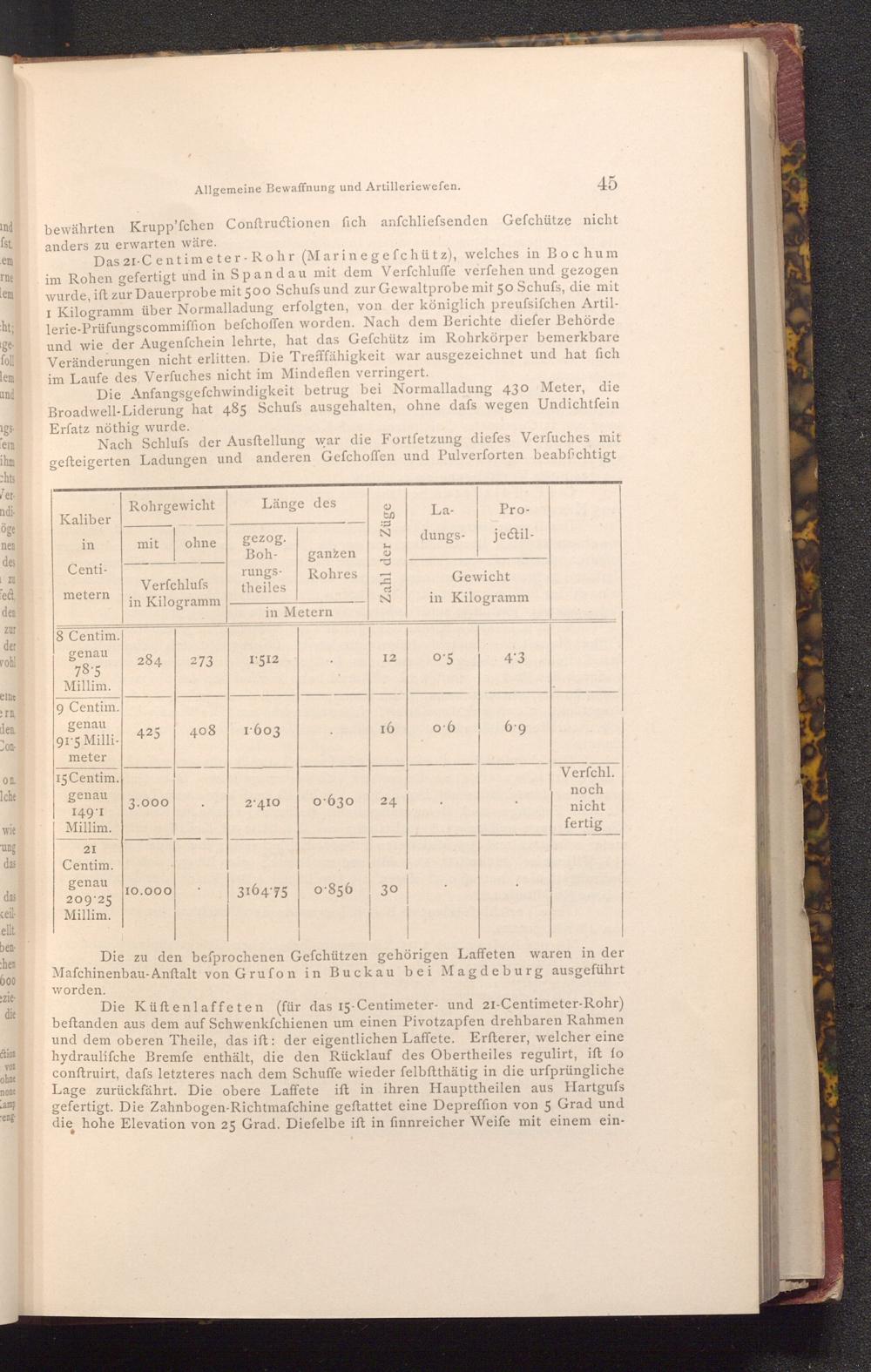 Die zu den befprochenen Gefchützen gehörigen Laffeten waren in der Mafchinenbau- Anftalt von Grufon in Buckau bei Magdeburg ausgeführt