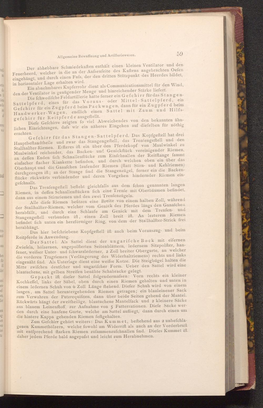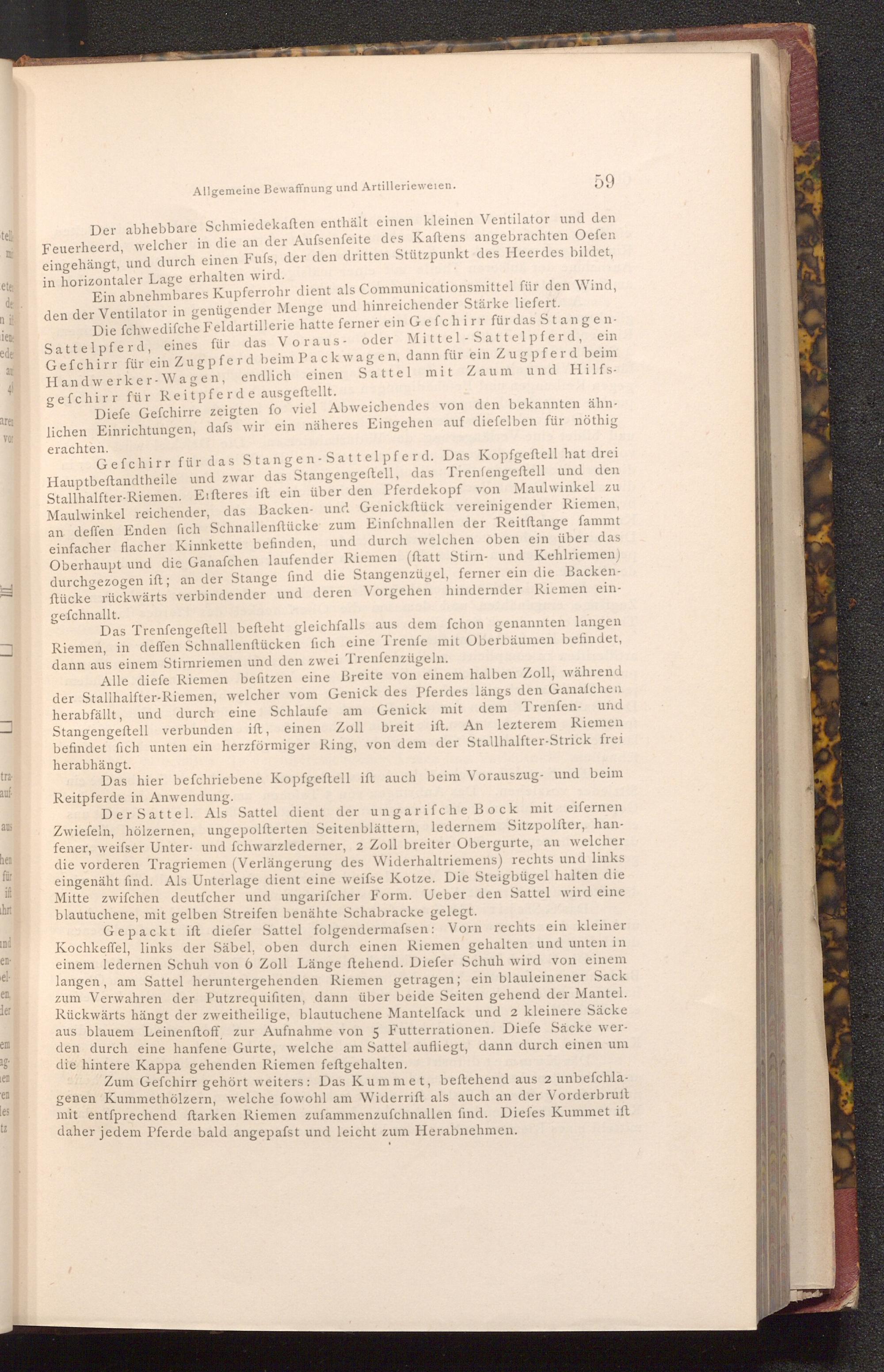 Die fchwediſche Feldartillerie hatte ferner ein Gefchirr für das StangenSattelpferd, eines für das Voraus- oder Mittel- Sattelpferd, ein Gefchirr für ein Zugpferd beim Packwagen, dann für ein Zugpferd beim Handwerker- Wagen, endlich einen Sattel mit Zaum und Hilfsgefchirr für Reitpferde ausgeftellt.