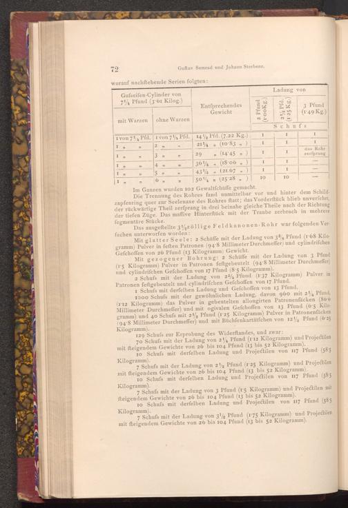 7 Schufs mit der Ladung von 3 Pfund( 15 Kilogramm) und Projectilen mit fteigendem Gewichte von 26 bis 104 Pfund( 13 bis 52 Kilogramm).