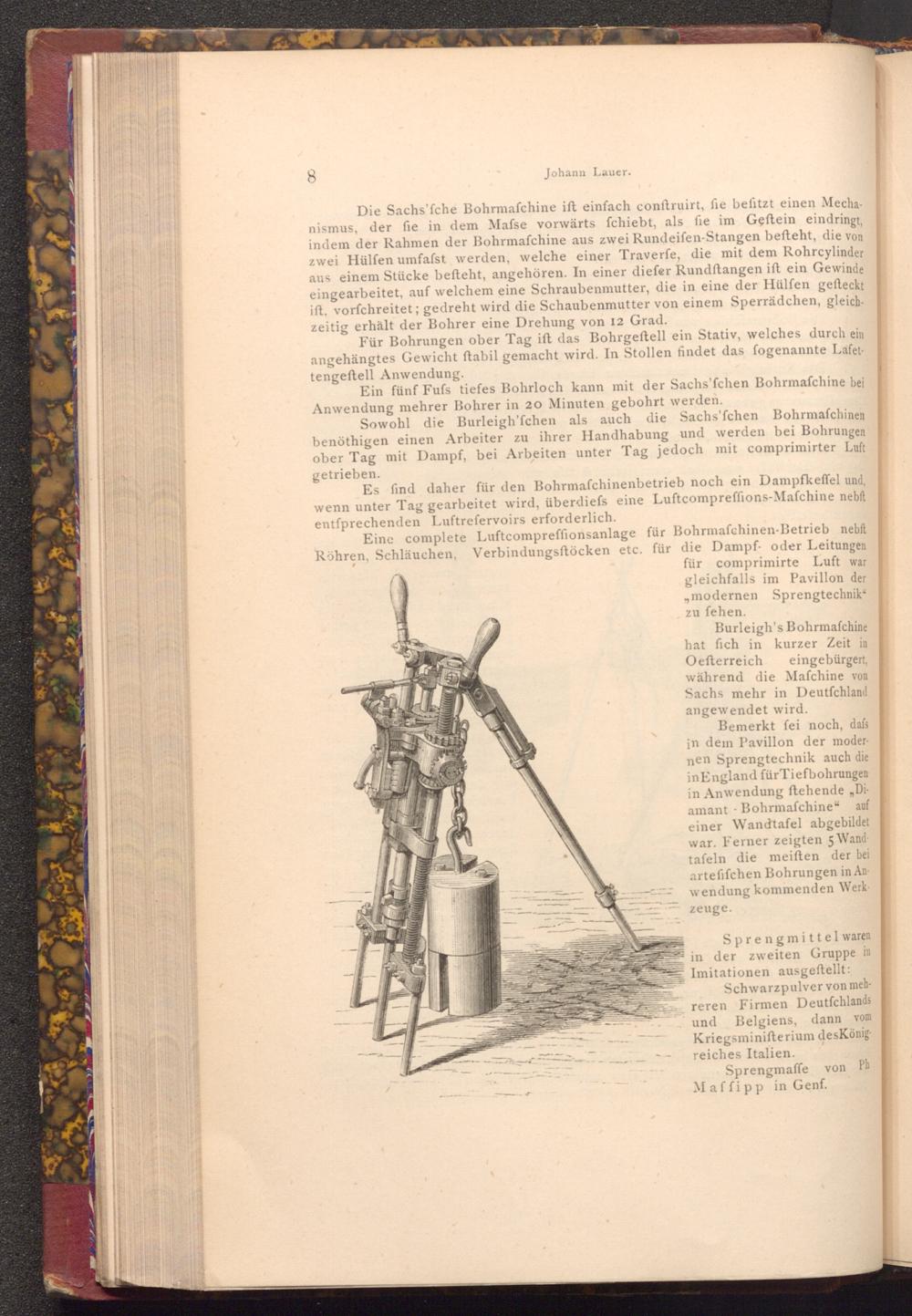 Burleigh's Bohrmaſchine hat fich in kurzer Zeit in Oefterreich eingebürgert, während die Mafchine von Sachs mehr in Deutſchland angewendet wird.