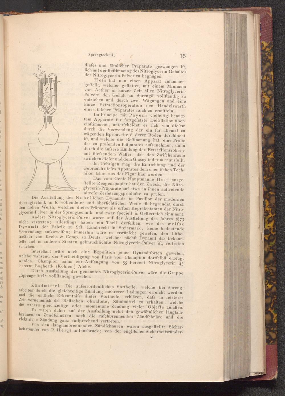 Die Ausftellung des Nobel'fchen Dynamits im Pavillon der modernen Sprengtechnik in fo vollendeter und überfichtlicher Weife ift begründet durch den hohen Werth, welchen diefes Präparat als erften Repräfentanten der Nitroglycerin Pulver in der Sprengtechnik, und zwar fpeciell in Oefterreich einnimmt. Andere Nitroglycerin- Pulver waren auf der Ausstellung des Jahres 1873 nicht vertreten; allerdings haben ein Theil derfelben, wie das weifse Dynamit der Fabrik zu Sct. Lambrecht in Steiermark, keine bedeutende Verwendung aufzuweifen; immerhin wäre es erwünſcht gewefen, den Lithofracteur von Krebs& Comp. zu Deutz, welcher nächft Dynamit das bekanntefte und in anderen Staaten gebräuchlichfte Nitroglycerin- Pulver ift, vertreten zu fehen.
