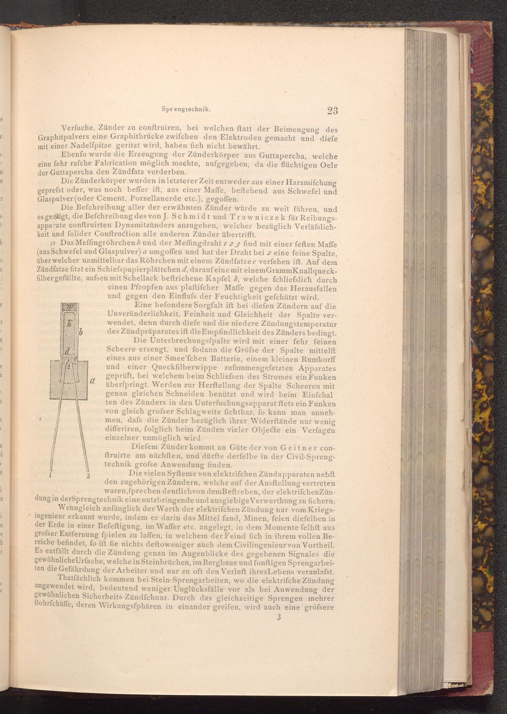 Die Befchreibung aller der erwähnten Zünder würde zu weit führen, und es genügt, die Befchreibung des von J. Schmidt und Trawniczek für Reibungsapparate conftruirten Dynamitzünders anzugeben, welcher bezüglich Verläfslichkeit und folider Conftruction alle anderen Zünder übertrifft.