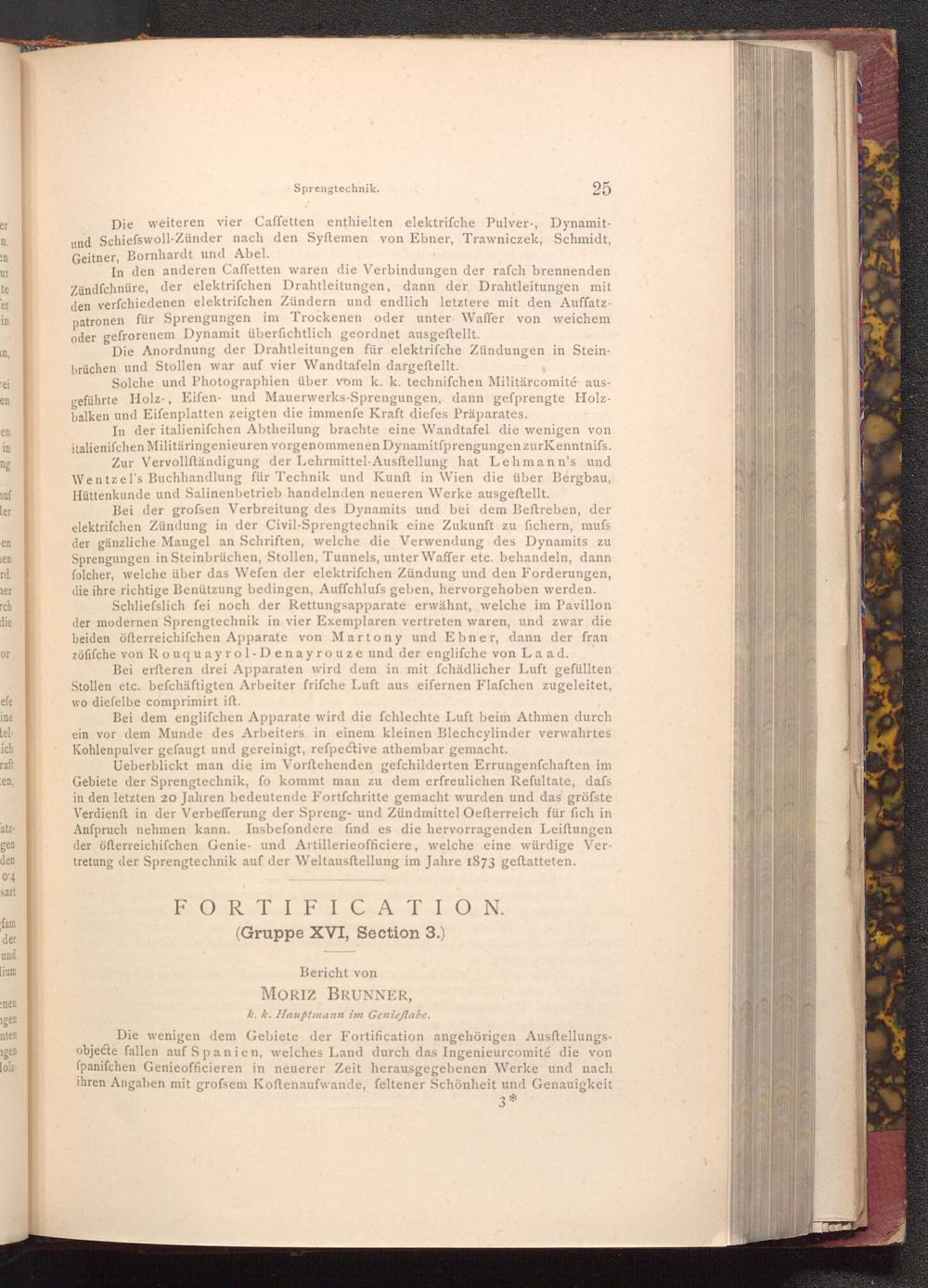 Ueberblickt man die im Vorftehenden gefchilderten Errungenfchaften im Gebiete der Sprengtechnik, fo kommt man zu dem erfreulichen Refultate, dafs in den letzten 20 Jahren bedeutende Fortfchritte gemacht wurden und das gröfste Verdienft in der Verbefferung der Spreng- und Zündmittel Oefterreich für fich in Anfpruch nehmen kann. Insbefondere find es die hervorragenden Leiftungen der öfterreichifchen Genie- und Artillerieofficiere, welche eine würdige Vertretung der Sprengtechnik auf der Weltausftellung im Jahre 1873 geftatteten.