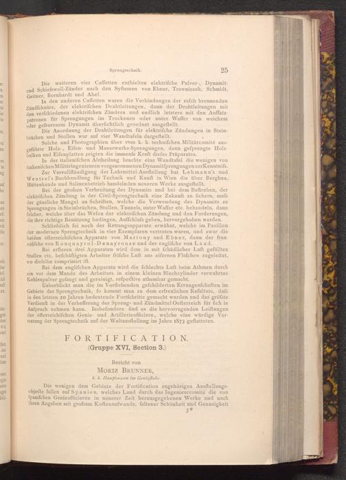 Die wenigen dem Gebiete der Fortification angehörigen Ausstellungsobjecte fallen auf Spanien, welches Land durch das Ingenieurcomité die von fpanifchen Genieofficieren in neuerer Zeit herausgegebenen Werke und nach ihren Angaben mit grofsem Koftenaufwande, feltener Schönheit und Genauigkeit 3*