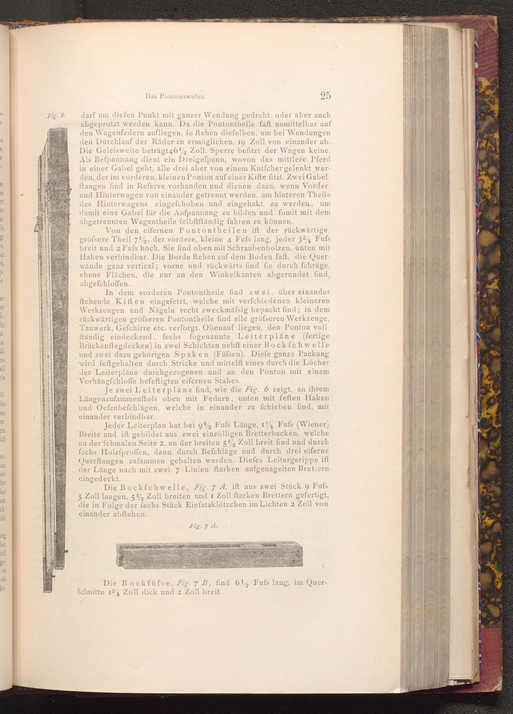 Die Bockfüfse, Fig. 7 B, find 6%, Fufs lang, im Querfchnitte 134 Zoll dick und 2 Zoll breit.