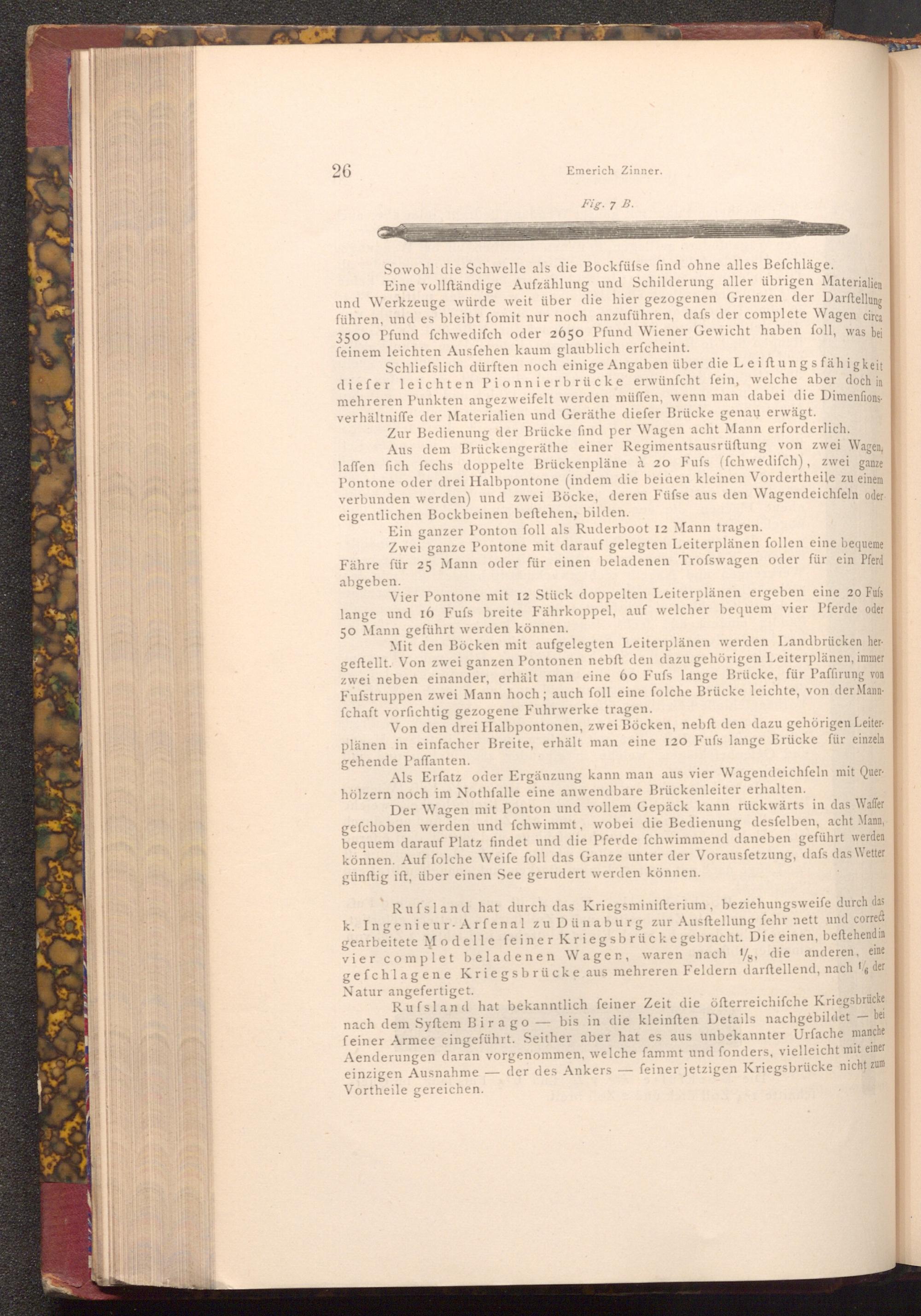 Rufsland hat bekanntlich feiner Zeit die öfterreichifche Kriegsbrücke bei nach dem Syftem Birago- bis in die kleinften Details nachgebildet feiner Armee eingeführt. Seither aber hat es aus unbekannter Urfache manche Aenderungen daran vorgenommen, welche fammt und fonders, vielleicht mit einer einzigen Ausnahme der des Ankers feiner jetzigen Kriegsbrücke nicht zum Vortheile gereichen.