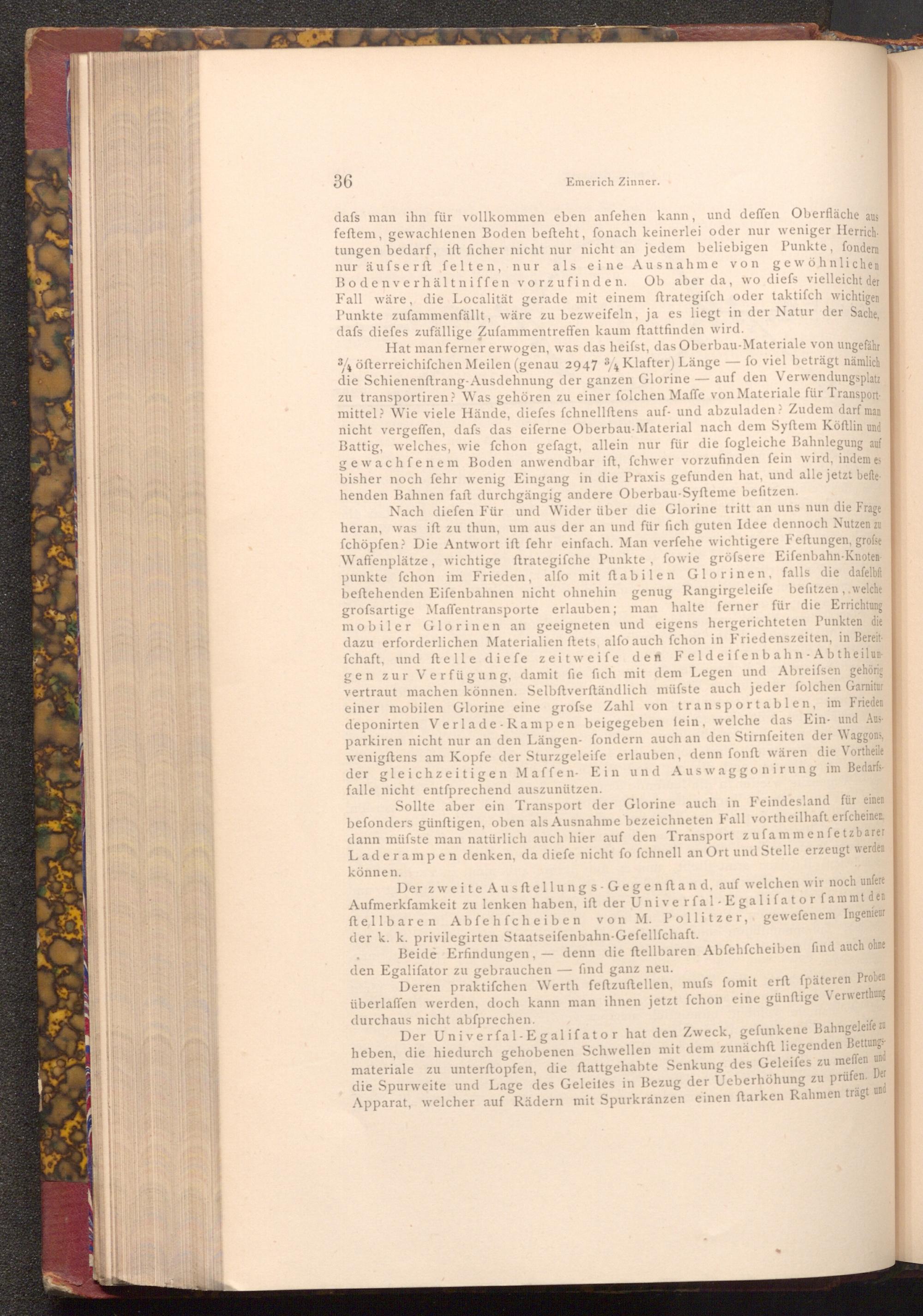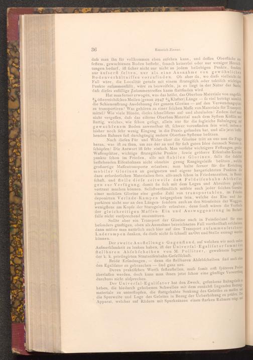 Hat man ferner erwogen, was das heifst, das Oberbau- Materiale von ungefähr 34 öfterreichifchen Meilen( genau 2947 3/4 Klafter) Länge- fo viel beträgt nämlich die Schienenftrang- Ausdehnung der ganzen Glorine auf den Verwendungsplatz zu transportiren? Was gehören zu einer folchen Maffe von Materiale für Transportmittel? Wie viele Hände, diefes fchnellftens auf- und abzuladen? Zudem darf man nicht vergeffen, dafs das eiferne Oberbau- Material nach dem Syftem Köftlin und Battig, welches, wie fchon gefagt, allein nur für die fogleiche Bahnlegung auf gewachfenem Boden anwendbar ift, fchwer vorzufinden fein wird, indem es bisher noch fehr wenig Eingang in die Praxis gefunden hat, und alle jetzt beftehenden Bahnen faft durchgängig andere Oberbau- Syfteme befitzen.