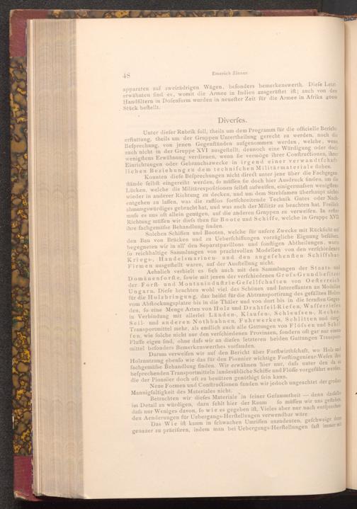 Konnten diefe Befprechungen nicht direct unter jene über die Fachgegenftände felbft eingereiht werden, fo müffen fie doch hier Ausdruck finden, um die Lücken, welche die Militärexpofitionen felbft aufweifen, einigermafsen wenigftens wieder in anderer Richtung zu decken, und um dem Strebfamen überhaupt nichts entgehen zu laffen, was die raftlos fortfchreitende Technik Gutes oder Nachahmungswürdiges gebracht hat, und was auch der Militär zu beachten hat. Freilich mufs es uns oft allein genügen, auf die anderen Gruppen zu verweifen. In erfter Richtung müffen wir diefs thun für Boote und Schiffe, welche in Gruppe XVII ihre fachgemäfse Behandlung finden.
