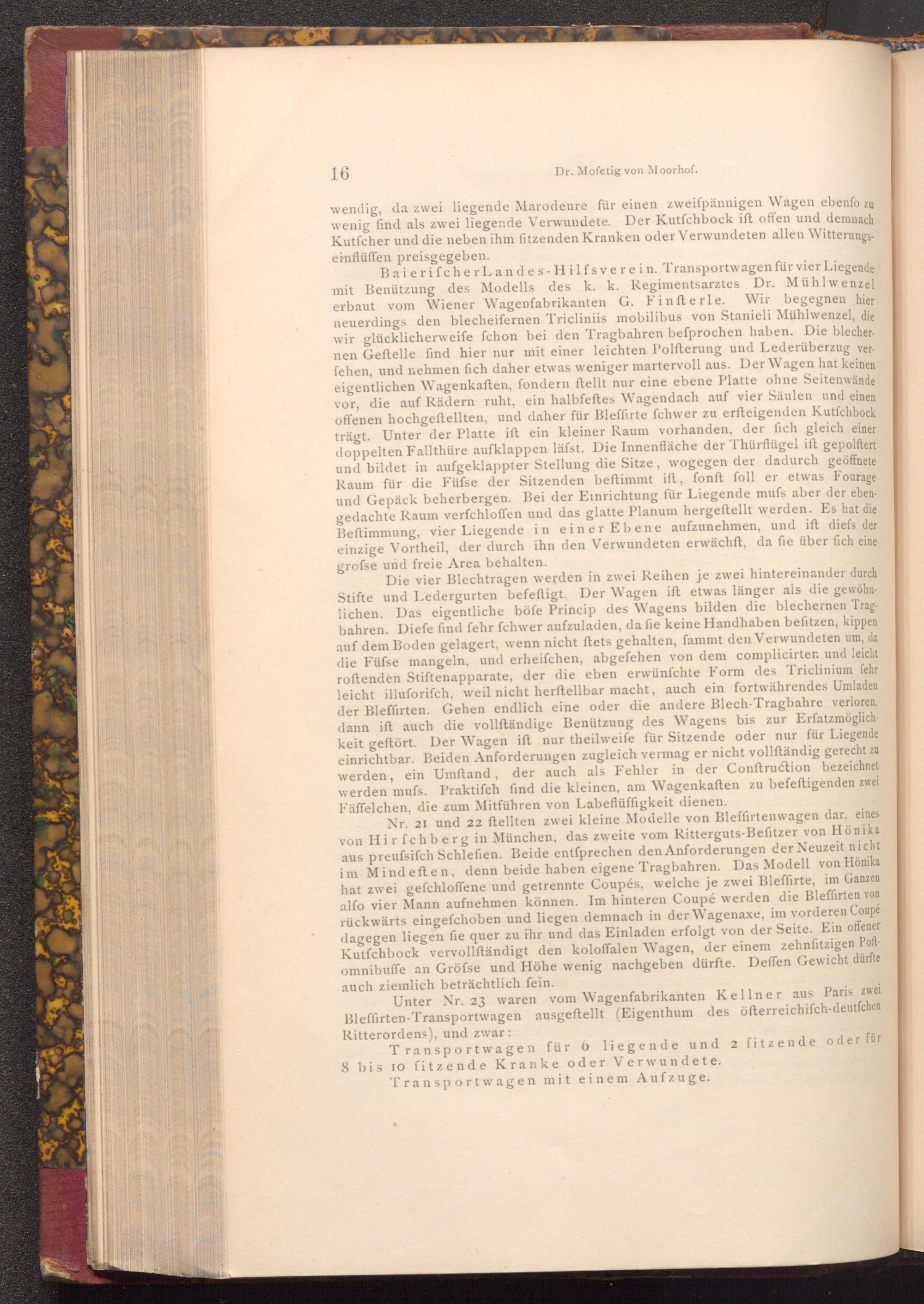 Unter Nr. 23 waren vom Wagenfabrikanten Kellner aus Paris zwei Bleffirten- Transportwagen ausgeftellt( Eigenthum des öfterreichifch- deutfchen Ritterordens), und zwar: