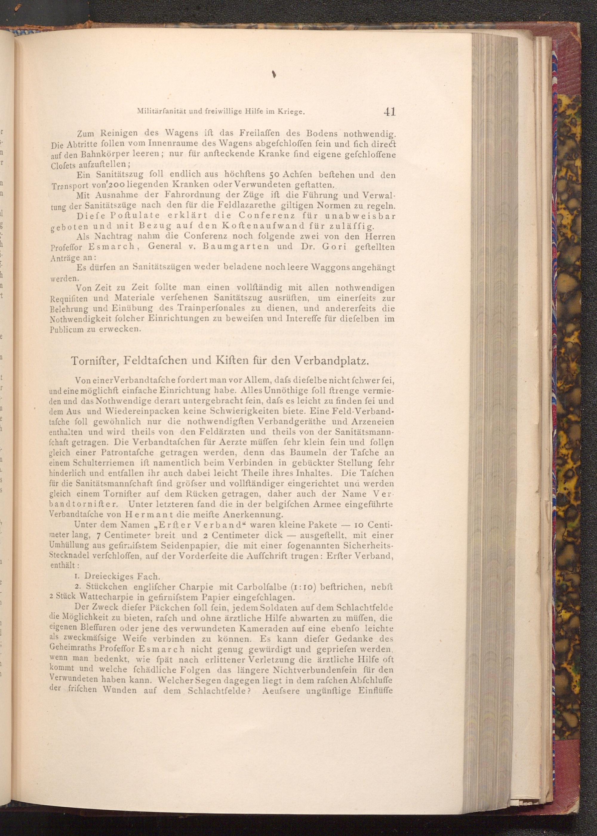 Als Nachtrag nahm die Conferenz noch folgende zwei von den Herren Profeffor Esmarch, General v. Baumgarten und Dr. Gori geftellten Anträge an: