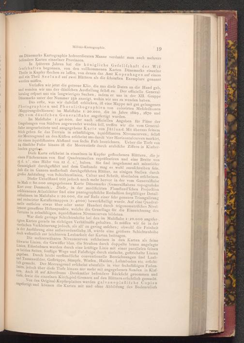 Das erfte, was wir dafelbft erblicken, ift eine Mappe mit gut gelungenen Photographien und Photolithographien von colorirten Mefsfectionen ( Mappirungsfectionen) im Mafsftabe 1: 20.000, die im Jahre 1869, 1870 und 1871 vom dänifchen Generalftabe angefertigt wurden.