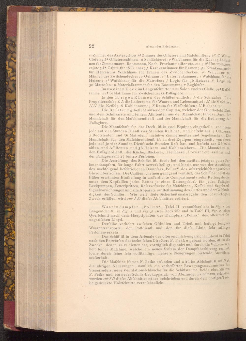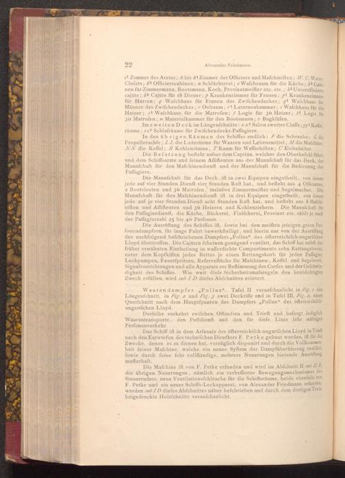 Das Schiff ift in dem Arfenale des öfterreichiſch- ungarifchen Lloyd in Trieft nach den Entwürfen des technifchen Directors F. Petke gebaut worden, ift für die Zwecke, denen es zu dienen hat, vorzüglich disponirt und durch die Vollkommenheit feiner Mafchine, welche ein neues Syftem der Dampfüberhitzung realifirt, fowie durch feine fehr vollſtändige, mehrere Neuerungen bietende Ausrüftung mufterhaft.