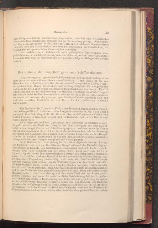 Befchreibung der ausgeftellt gewefenen Schiffsmafchinen.