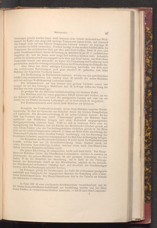 Die Endfpannung im Niederdruck- Cylinder, welche bei den gewöhnlichen Schiffs- Compoundmafchinen fehr niedrig wird, ift mittelft der neuen Mafchine auch bei mäfsiger Keffelfpannung bedeutend höher.
