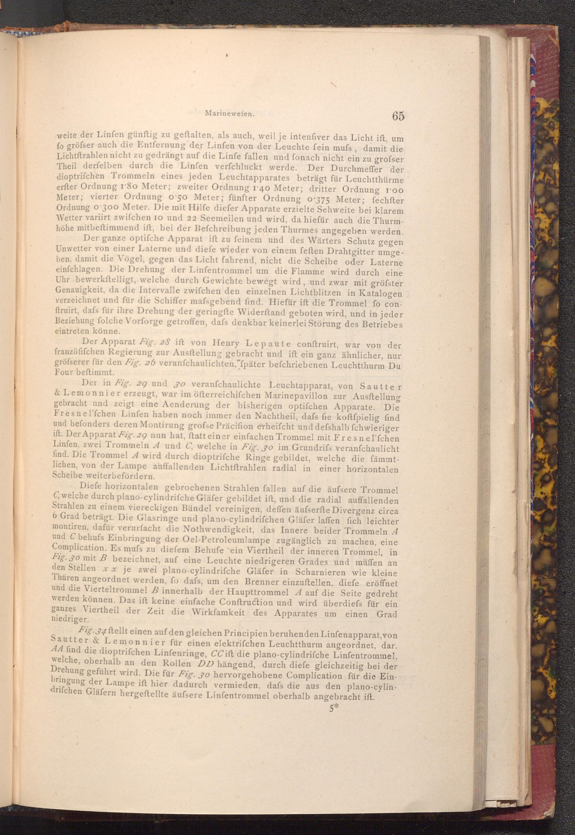 Der Apparat Fig. 28 ift von Henry Lepaute conftruirt, war von der franzöfifchen Regierung zur Ausftellung gebracht und ift ein ganz ähnlicher, nur gröfserer für den Fig. 26 veranfchaulichten," fpäter befchriebenen Leuchtthurm Du Four beftimmt.