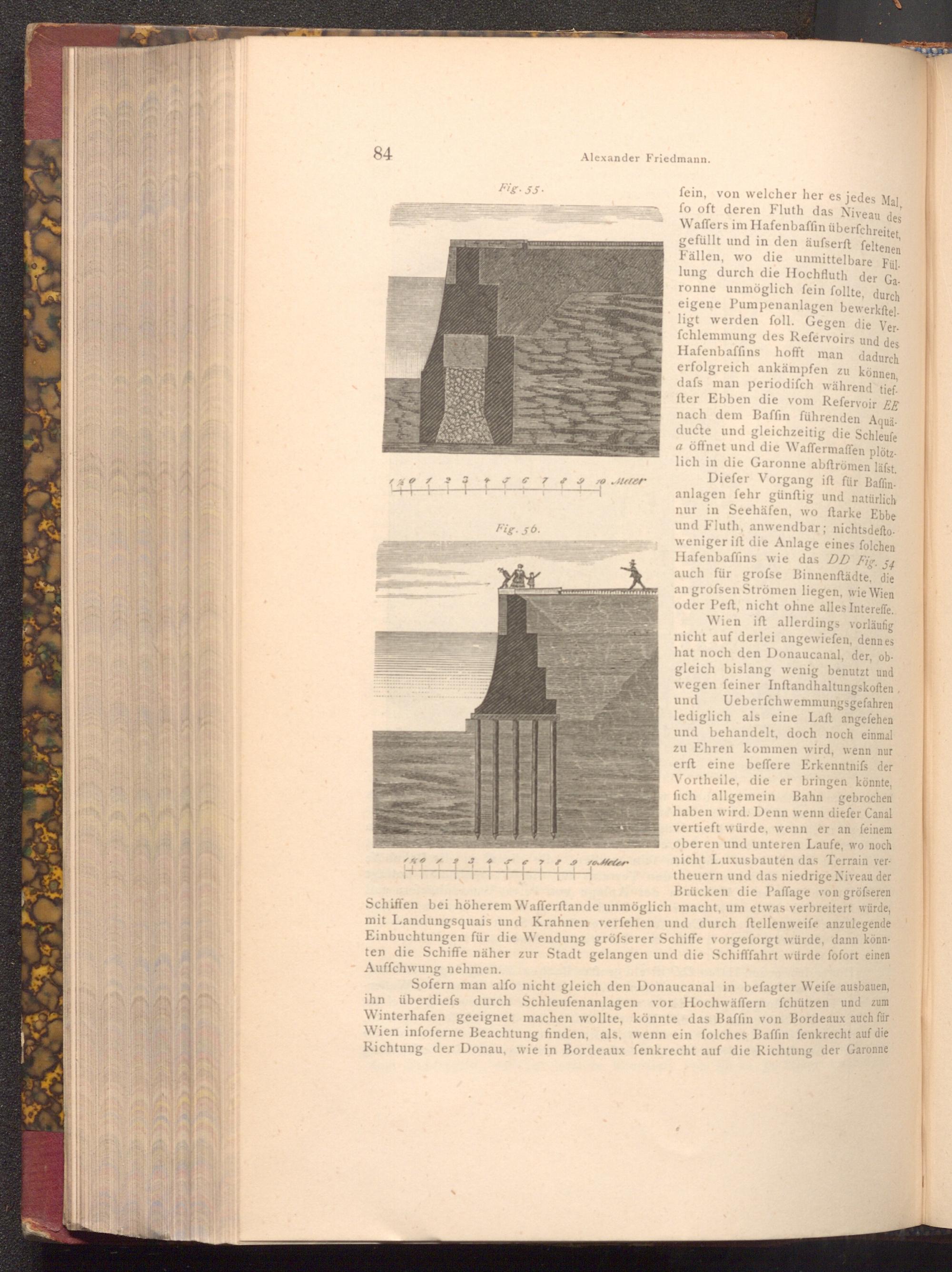 Sofern man alfo nicht gleich den Donaucanal in befagter Weife ausbauen, ihn überdiefs durch Schleufenanlagen vor Hochwäffern fchützen und zum Winterhafen geeignet machen wollte, könnte das Baffin von Bordeaux auch für Wien infoferne Beachtung finden, als, wenn ein folches Baffin fenkrecht auf die Richtung der Donau, wie in Bordeaux fenkrecht auf die Richtung der Garonne