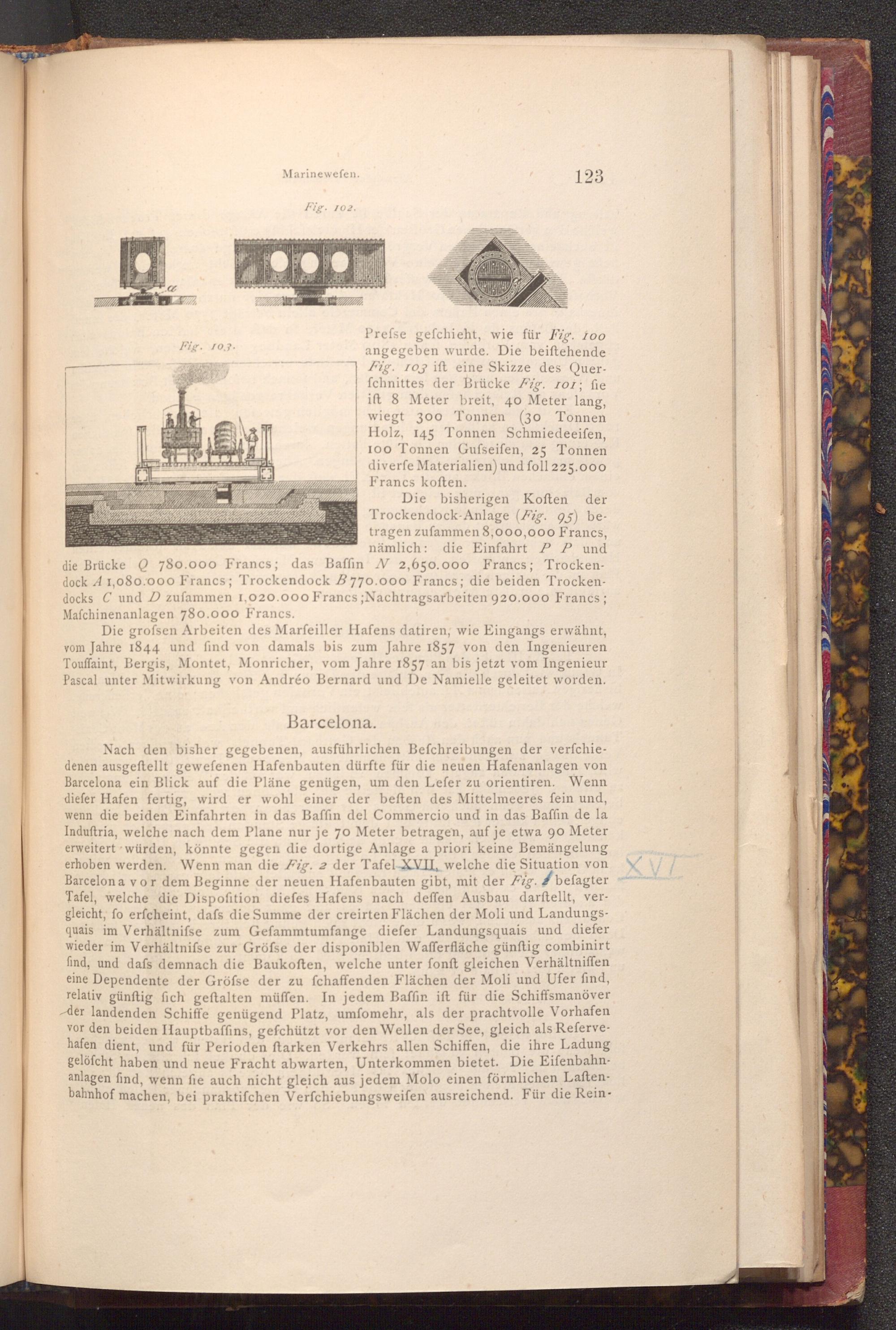 Die grofsen Arbeiten des Marſeiller Hafens datiren, wie Eingangs erwähnt, vom Jahre 1844 und find von damals bis zum Jahre 1857 von den Ingenieuren Touffaint, Bergis, Montet, Monricher, vom Jahre 1857 an bis jetzt vom Ingenieur Pascal unter Mitwirkung von Andréo Bernard und De Namielle geleitet worden.