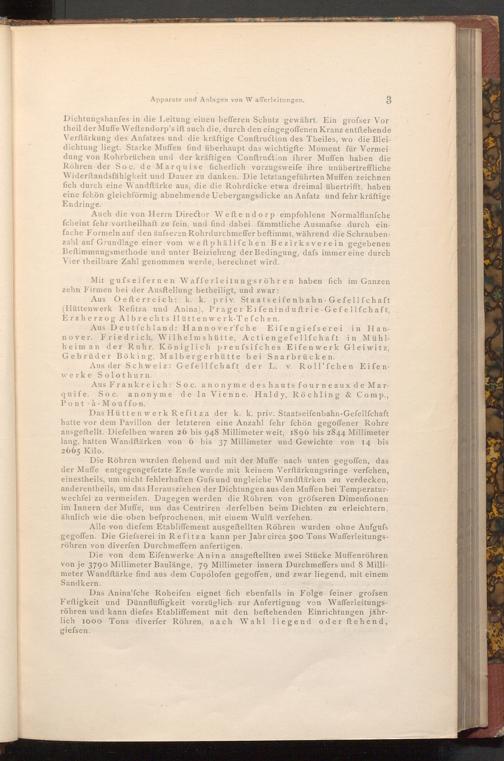 Alle von diefem Etabliffement ausgeftellten Röhren wurden ohne Aufgufs gegoffen. Die Giefserei in Refit za kann per Jahr circa 500 Tons Wafferleitungsröhren von diverfen Durchmeffern anfertigen.