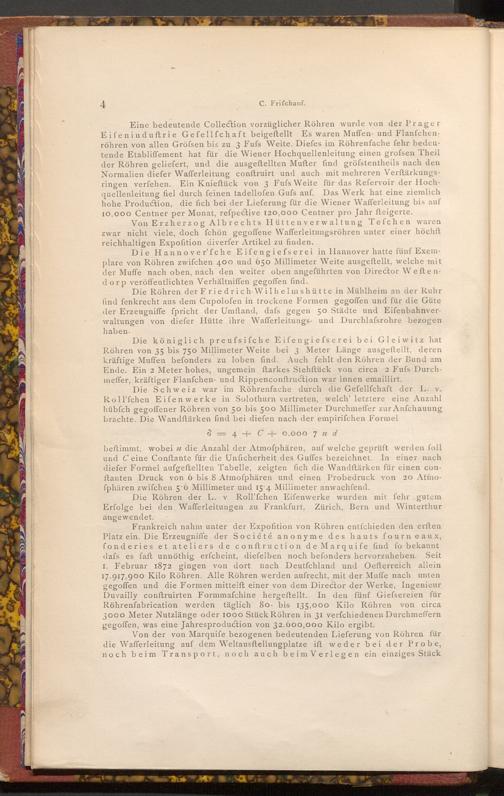 Die Röhren der L. v Roll'fchen Eifenwerke wurden mit fehr gutem Erfolge bei den Wafferleitungen zu Frankfurt, Zürich, Bern und Winterthur angewendet.