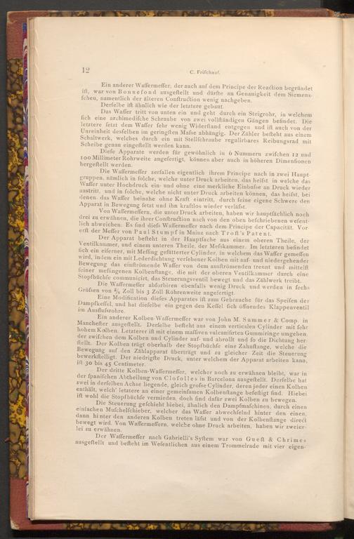 Von Waffermeffern, die unter Druck arbeiten, haben wir hauptfächlich noch drei zu erwähnen, die ihrer Conftruction nach von den oben befchriebenen wefentlich abweichen. Es find diefs Waffermeffer nach dem Principe der Capacität. Vorerft der Meffer von Paul Stumpf in Mainz nach Troft's Patent.