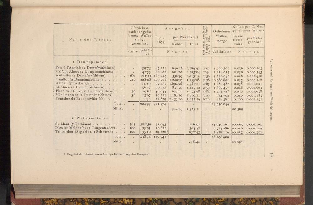 Apparate und Anlagen von Wafferleitungen.