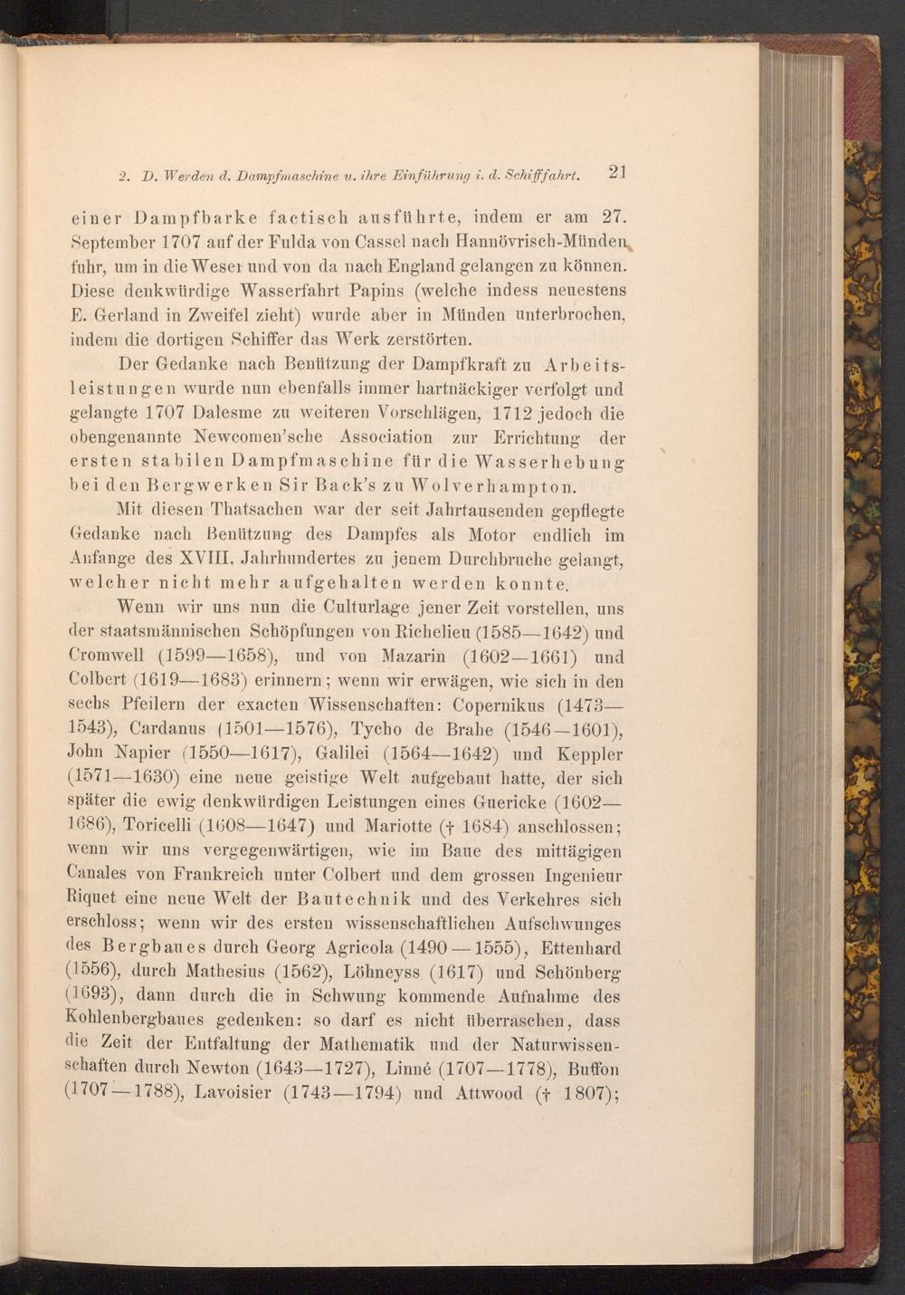 2. D. Werden d. Dampfmaschine u. ihre Einführung i. d. Schifffahrt. 21