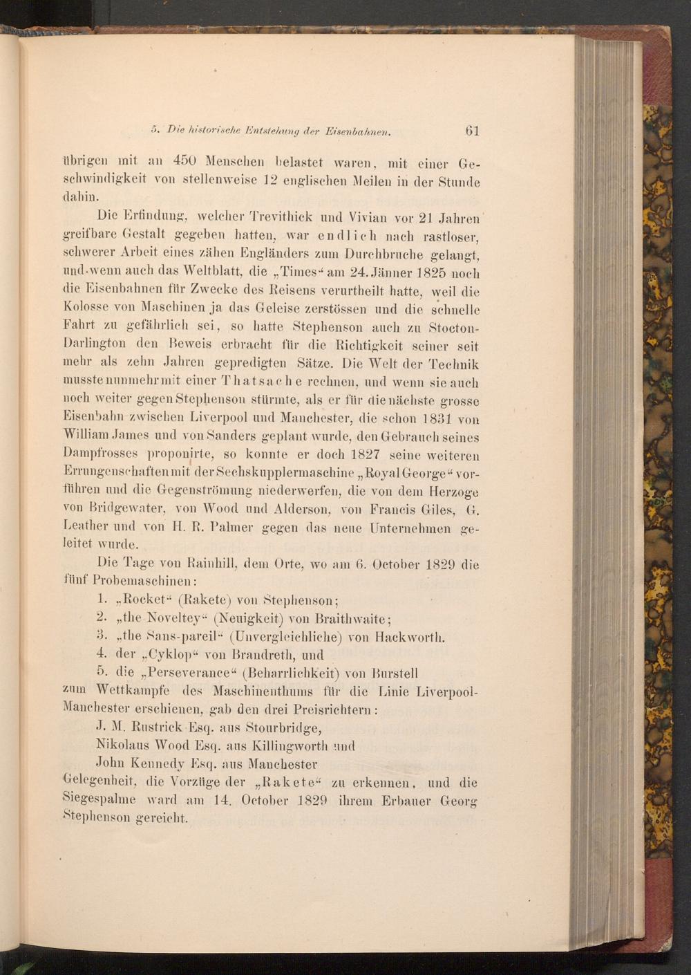Die Tage von Rainhill, dem Orte, wo am 6. October 1829 die fünf Probemaschinen:
