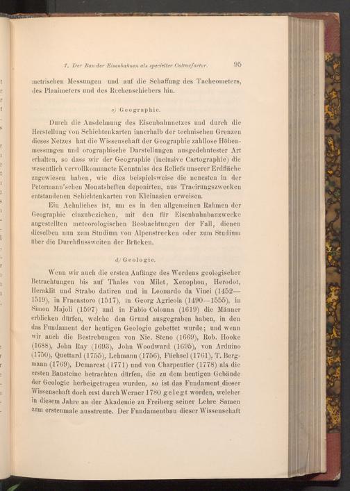 Durch die Ausdehnung des Eisenbahnnetzes und durch die Herstellung von Schichtenkarten innerhalb der technischen Grenzen dieses Netzes hat die Wissenschaft der Geographie zahllose Höhenmessungen und orographische Darstellungen ausgedehntester Art erhalten, so dass wir der Geographie( inclusive Cartographie) die wesentlich vervollkommnete Kenntniss des Reliefs unserer Erdfläche zugewiesen haben, wie dies beispielsweise die neuesten in der Petermann'schen Monatsheften deponirten, aus Tracirungszwecken entstandenen Schichtenkarten von Kleinasien erweisen.