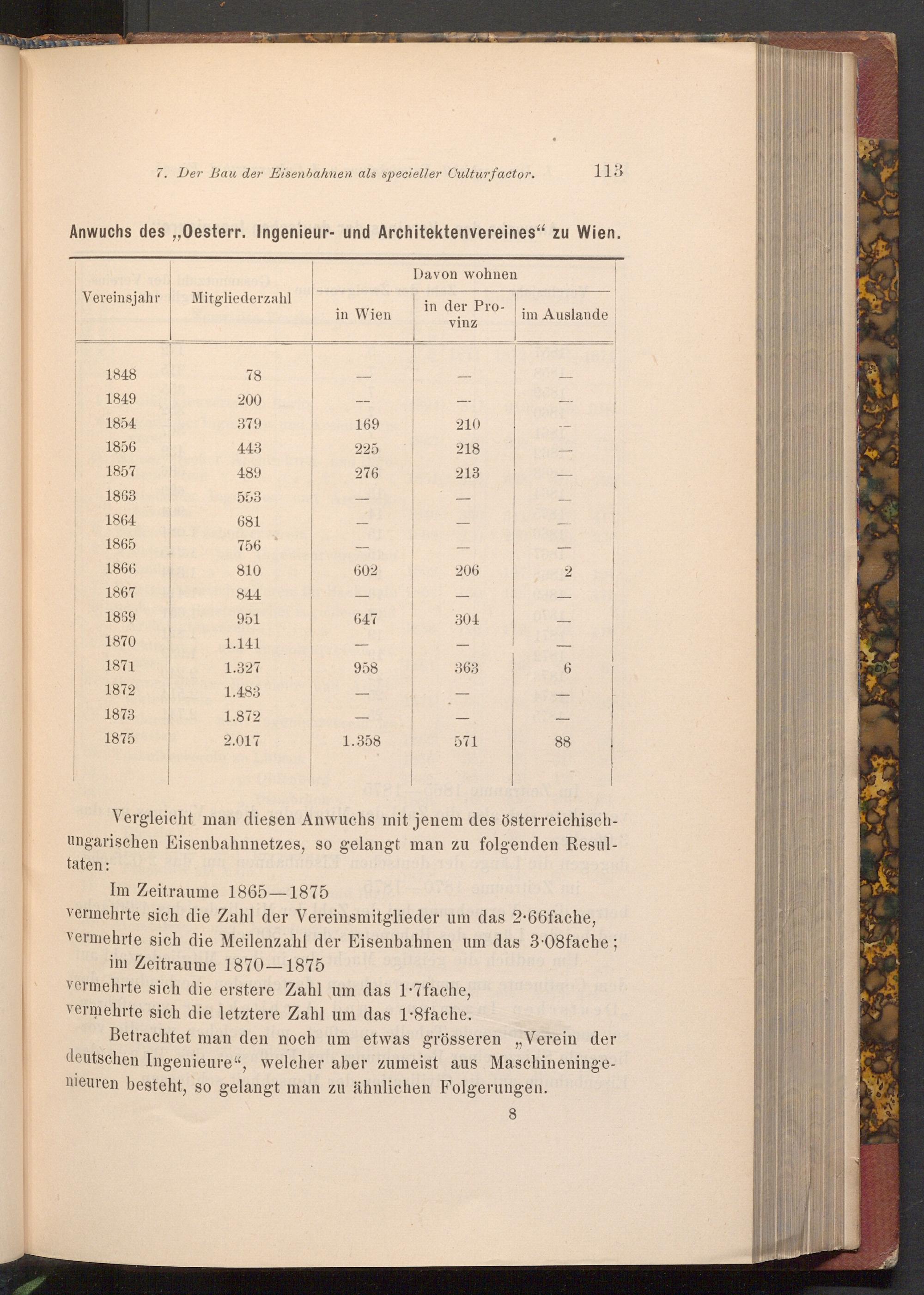 vermehrte sich die Zahl der Vereinsmitglieder um das 2.66fache, vermehrte sich die Meilenzahl der Eisenbahnen um das 3.08fache;