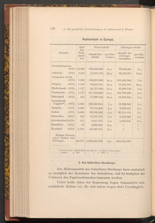 Das Bildungsmittel des Schreibens überhaupt kann statistisch a) bezüglich der Kenntniss des Schreibens, und b) bezüglich des Volumens des Papierverbrauches bemessen werden. teneraleticall Ueber beide Arten der Bemessung liegen bekanntlich viele statistische Zahlen vor, die sich indess wegen ihrer Unzulänglich