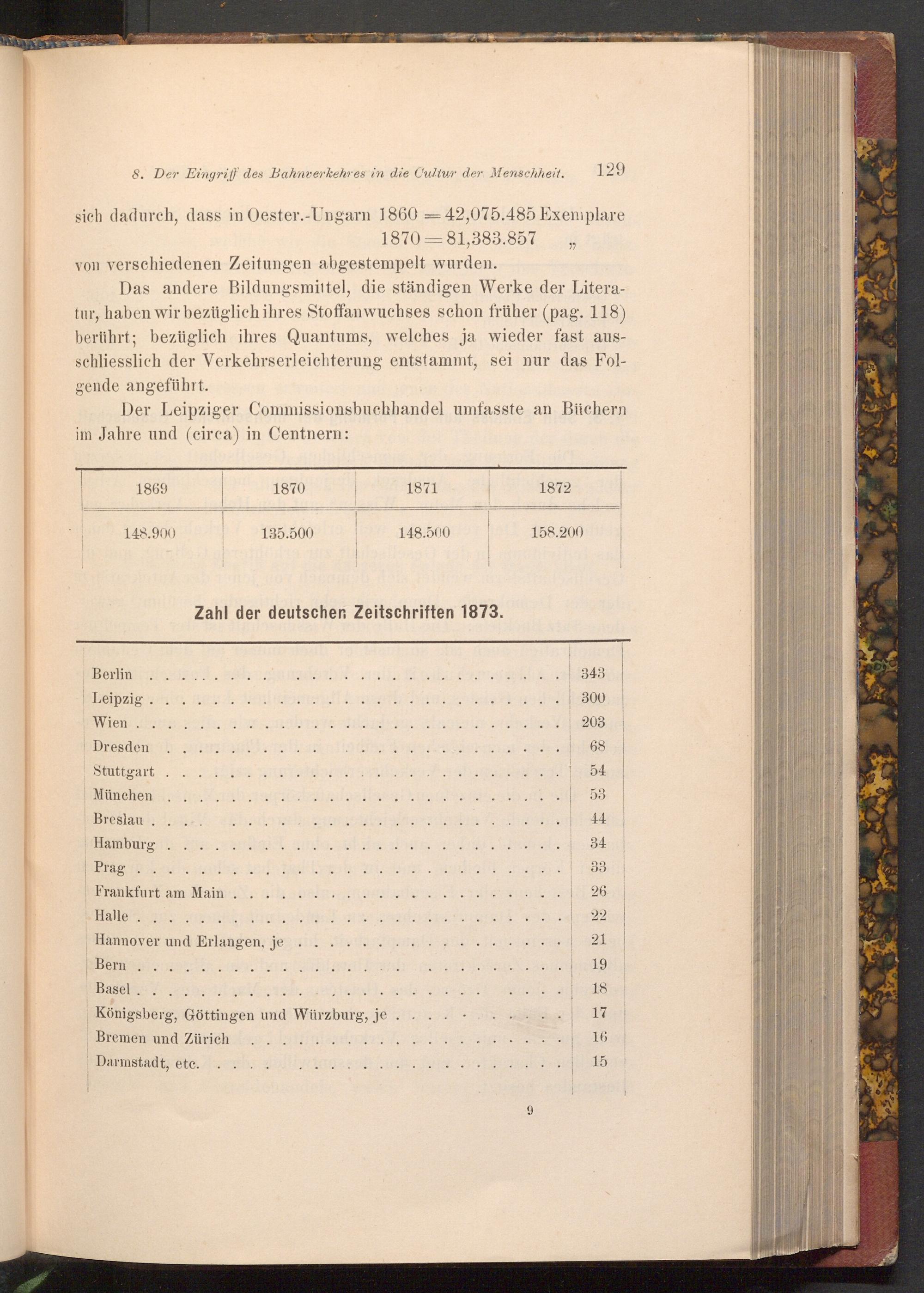 Das andere Bildungsmittel, die ständigen Werke der Literatur, haben wir bezüglich ihres Stoffanwuchses schon früher( pag. 118) berührt; bezüglich ihres Quantums, welches ja wieder fast ausschliesslich der Verkehrserleichterung entstammt, sei nur das Folgende angeführt.