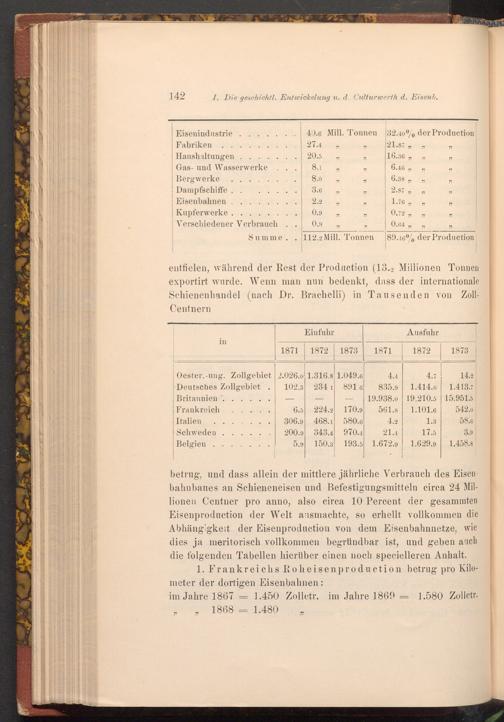 entfielen, während der Rest der Production( 13.2 Millionen Tonnen exportirt wurde. Wenn man nun bedenkt, dass der internationale Schienenhandel( nach Dr. Brachelli) in Tausenden von Zoll