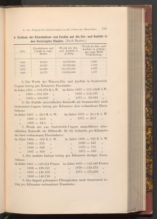 4. Einfluss der Eisenbahnen und Canäle auf die Ein- und Ausfuhr in den Vereinigten Staaten.( Nach Baxter.)