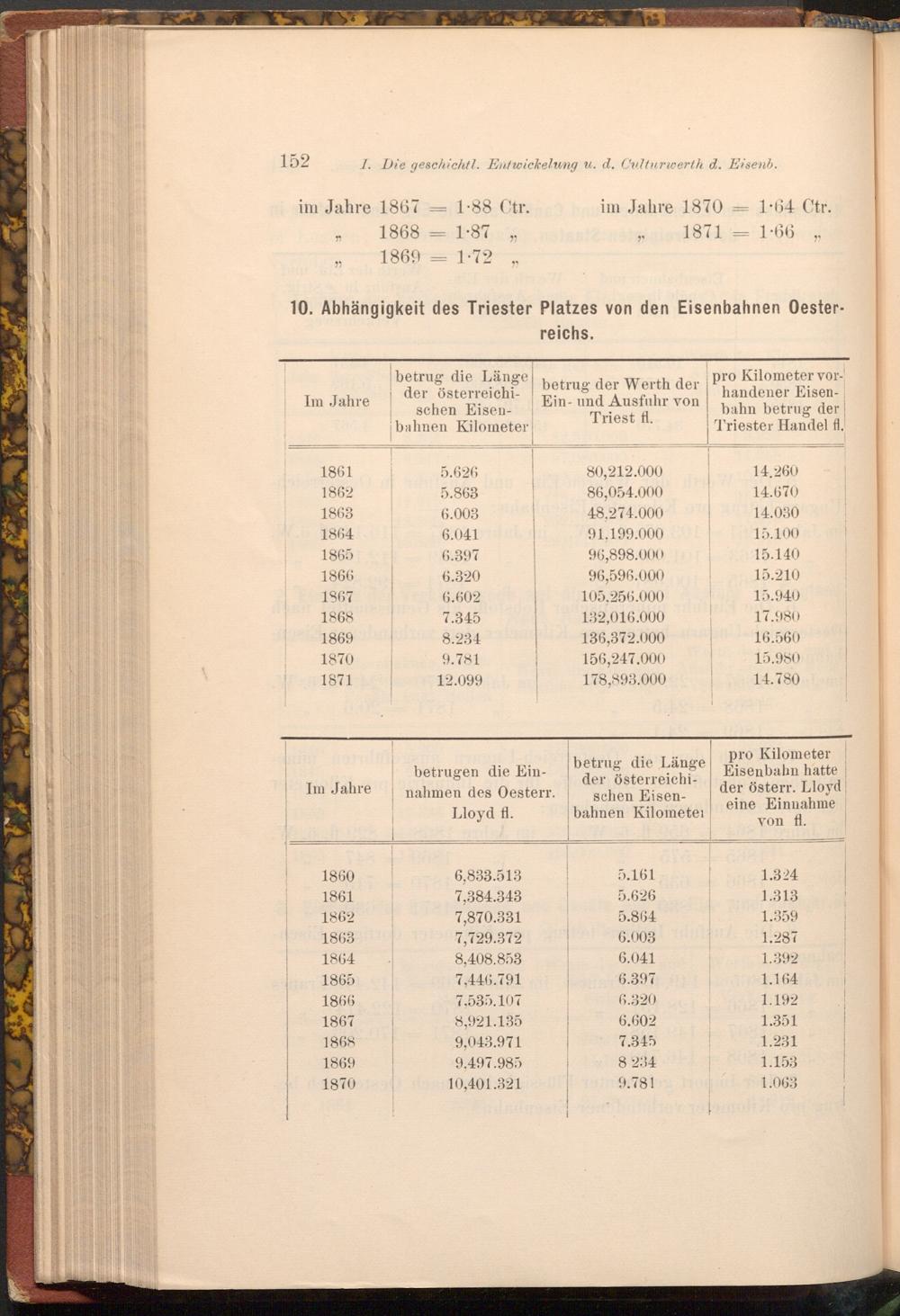 pro Kilometer Eisenbahn hatte der österr. Lloyd eine Einnahme von fl.
