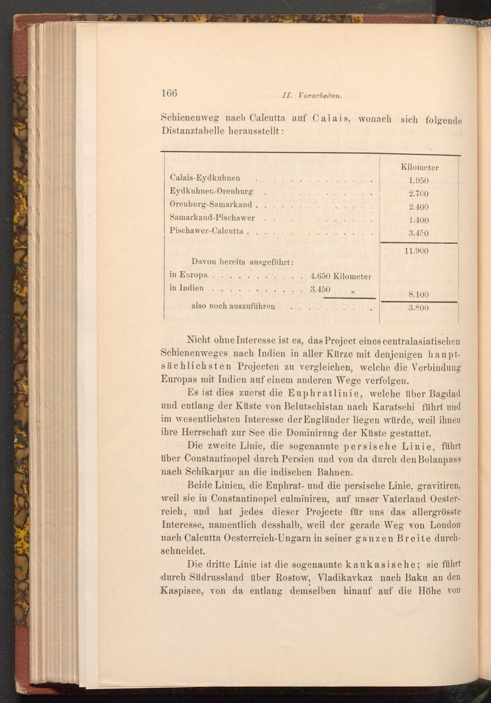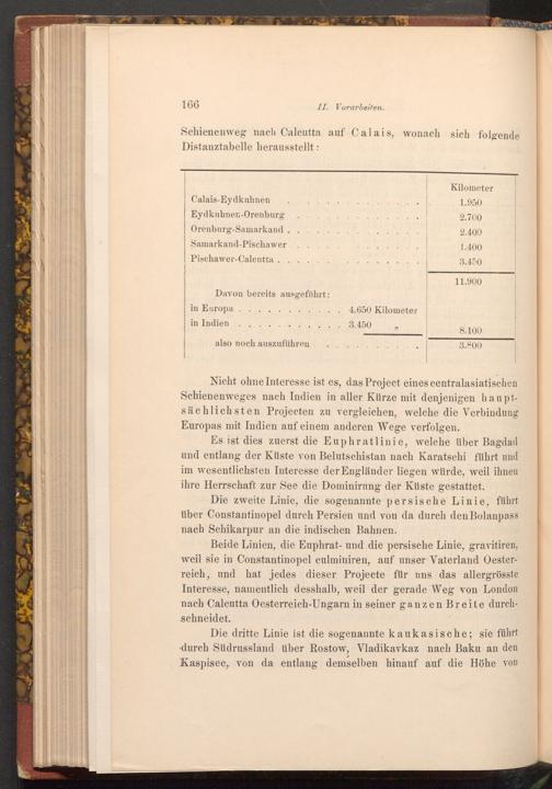 Nicht ohne Interesse ist es, das Project eines centralasiatischen Schienenweges nach Indien in aller Kürze mit denjenigen hauptsächlichsten Projecten zu vergleichen, welche die Verbindung Europas mit Indien auf einem anderen Wege verfolgen.
