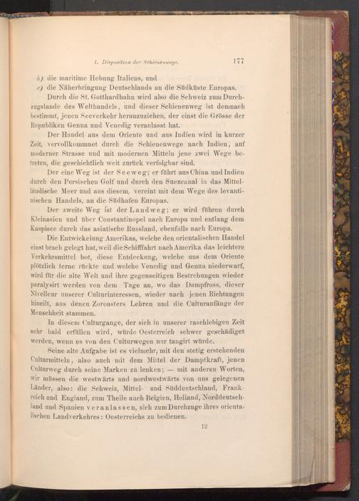 In diesem Culturgange, der sich in unserer raschlebigen Zeit sehr bald erfüllen wird, würde Oesterreich schwer geschädiget werden, wenn es von den Culturwegen nur tangirt würde.