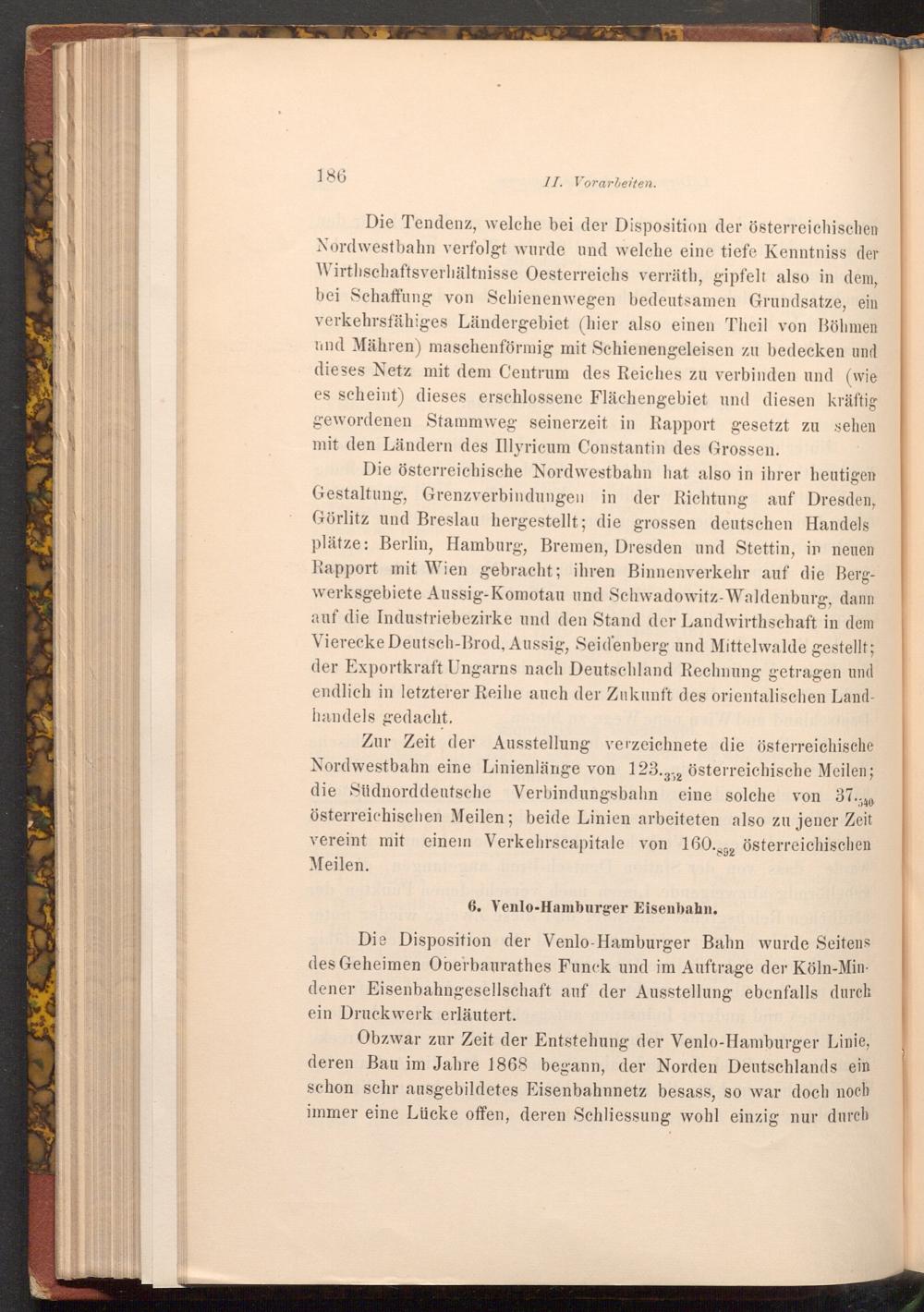 Die Disposition der Venlo- Hamburger Bahn wurde Seitens des Geheimen Oberbaurathes Funck und im Auftrage der Köln- Mindener Eisenbahngesellschaft auf der Ausstellung ebenfalls durch ein Druckwerk erläutert.
